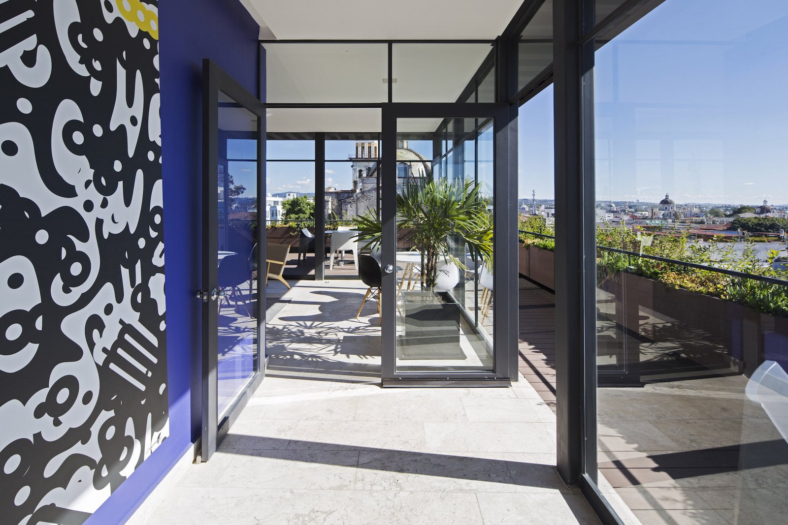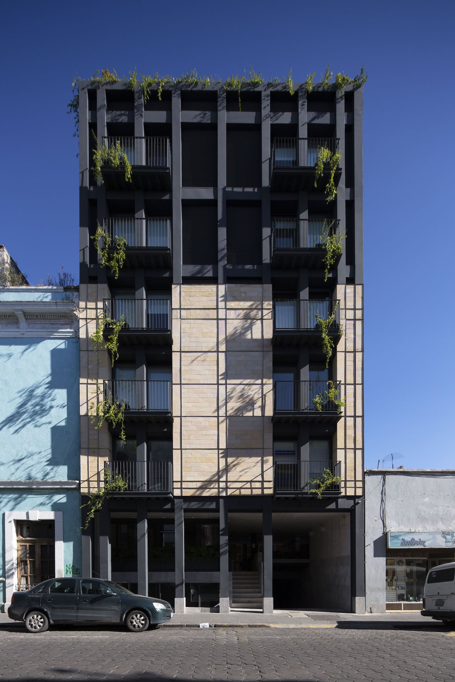 Teniendo clara la importancia del patrimonio arquitectónico de la ciudad de Puebla, la propuesta busca rescatar y reincorporar a la actividad urbana este edificio subutilizado y deteriorado construido en 1972. Las proporciones del edificio histórico preexistentes son respetadas propiciando la integración con su entorno desde su fachada. Los pórticos generan acceso a los locales comerciales ubicados en la planta baja, además de permitir conexión directa con la calle y lo pétreo en su fachada genera continuidad de manera visual con el edificio contiguo en busca de armonía.