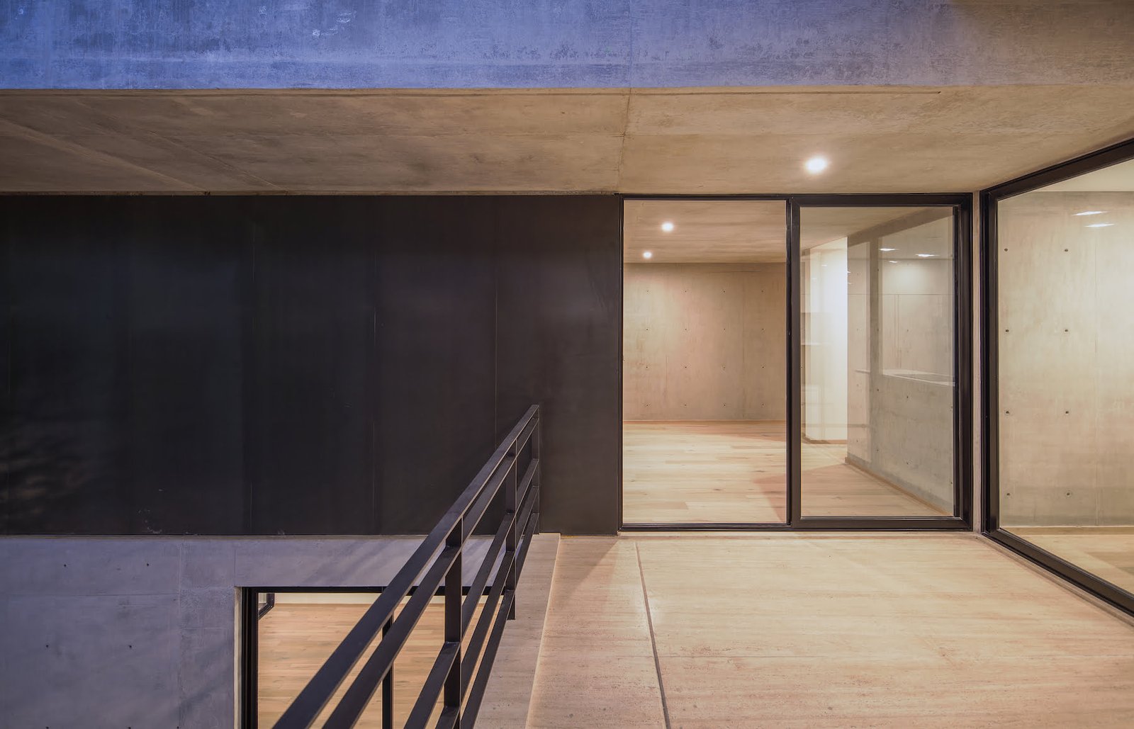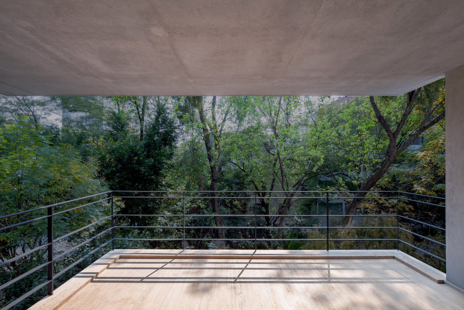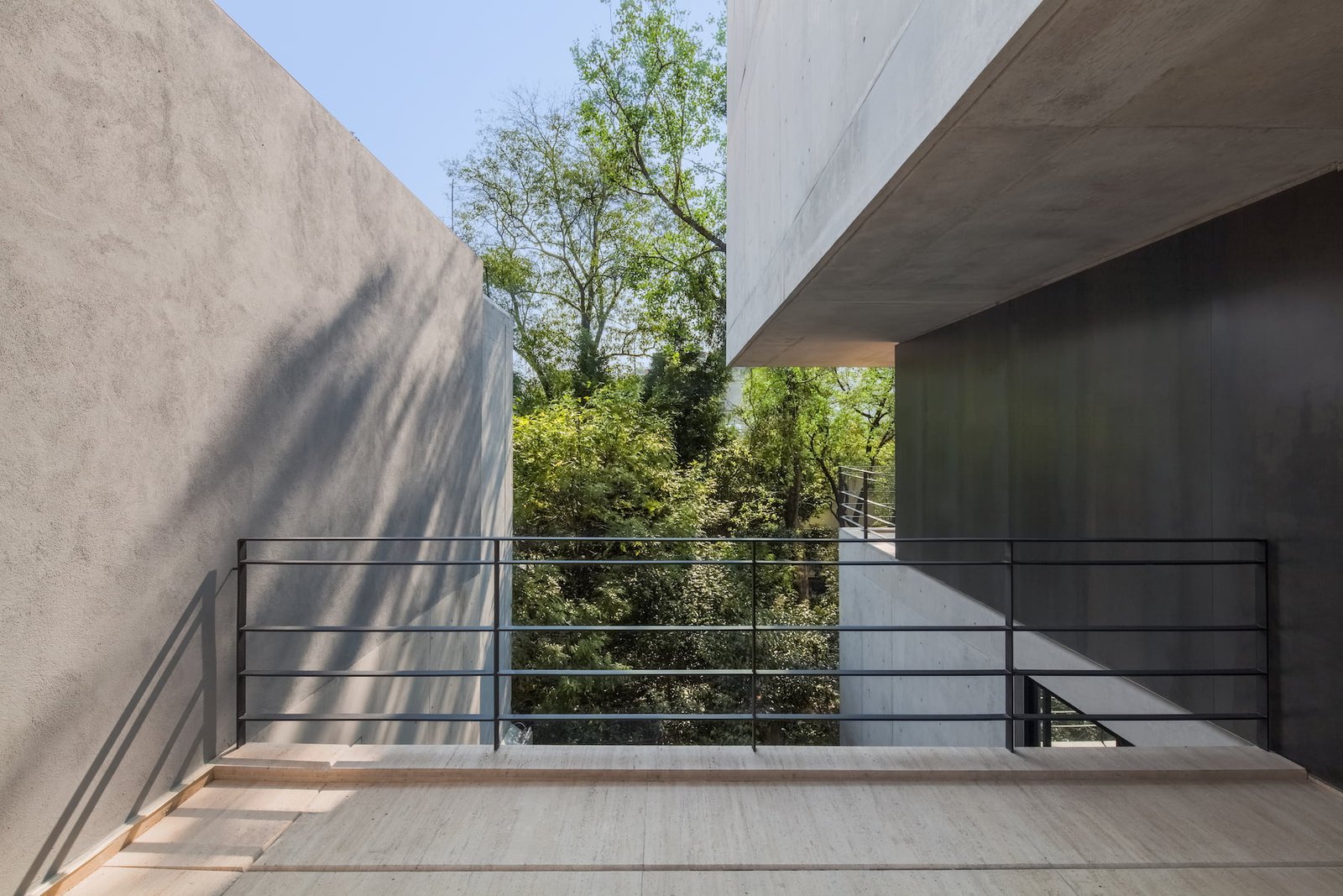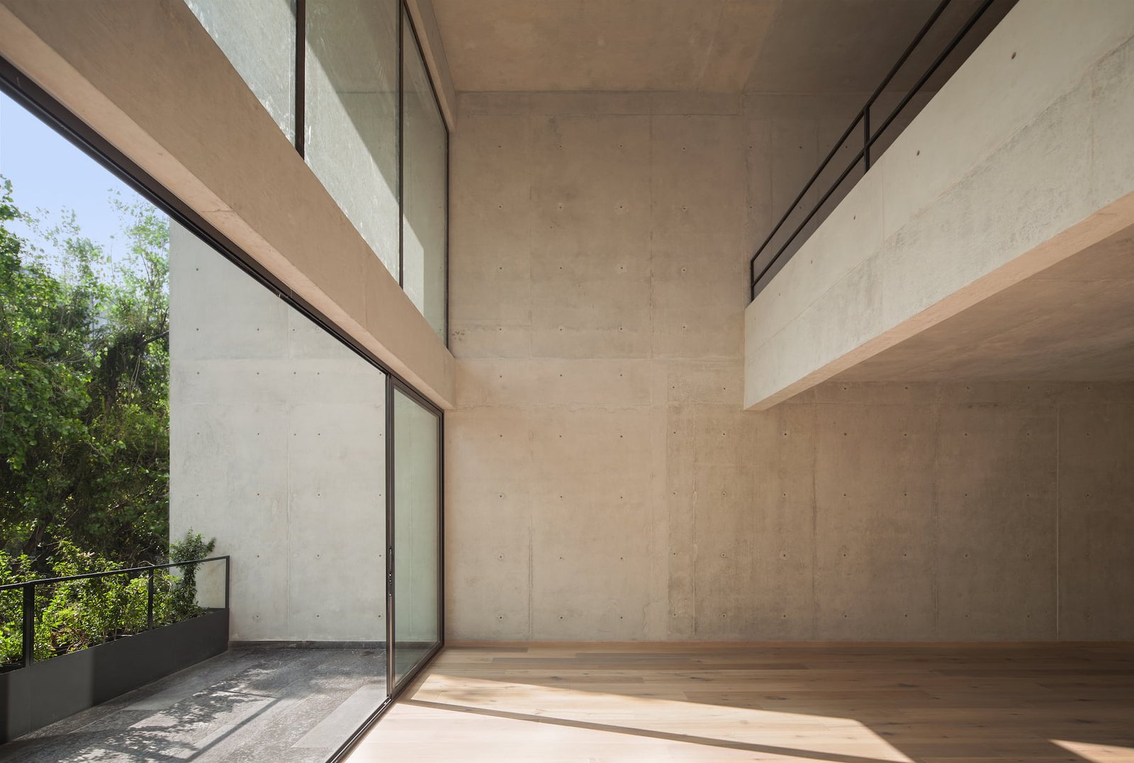 El proyecto se resolvió en dos grandes volúmenes, a manera de cajas de concreto aparente, orientadas hacia la avenida arbolada para logran enmarcar las mejores vistas hacia el contexto.