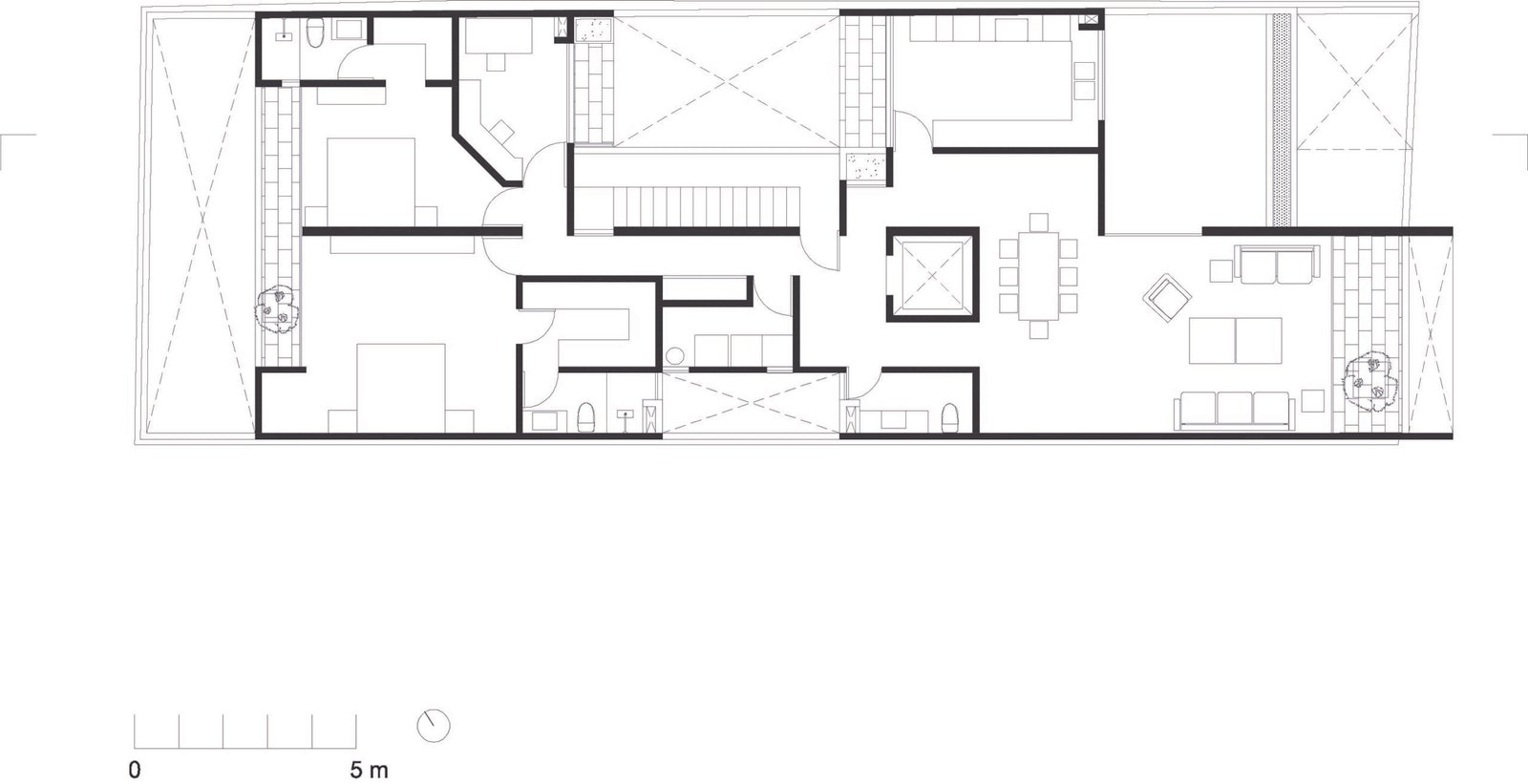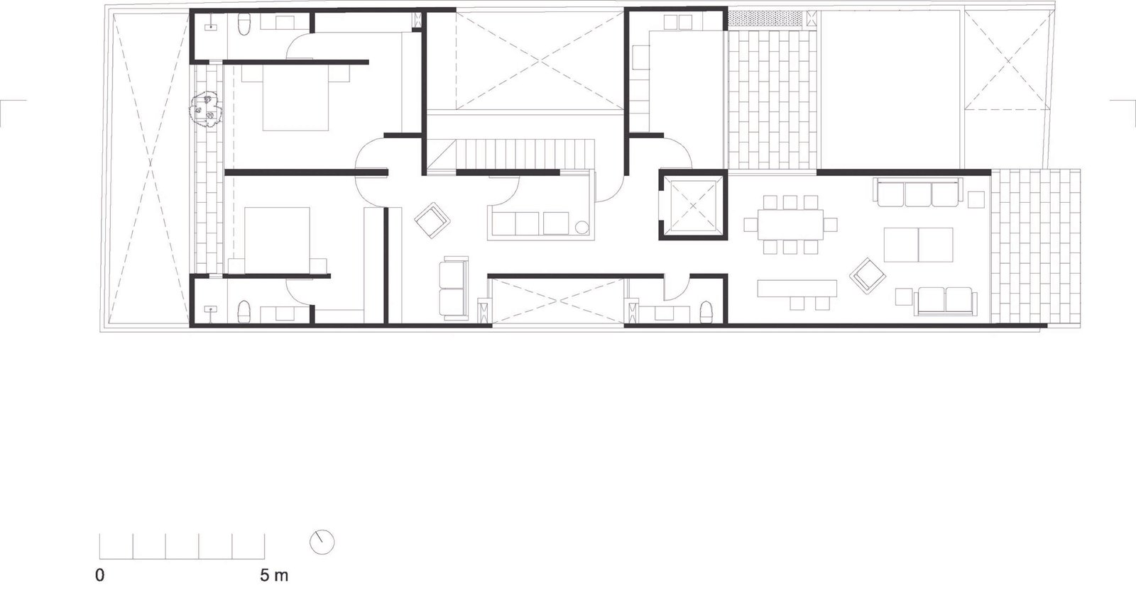 El penthhouse se encuentra en los dos últimos niveles y cuenta con una doble altura que articula los espacios públicos de la vivienda en sus dos niveles.