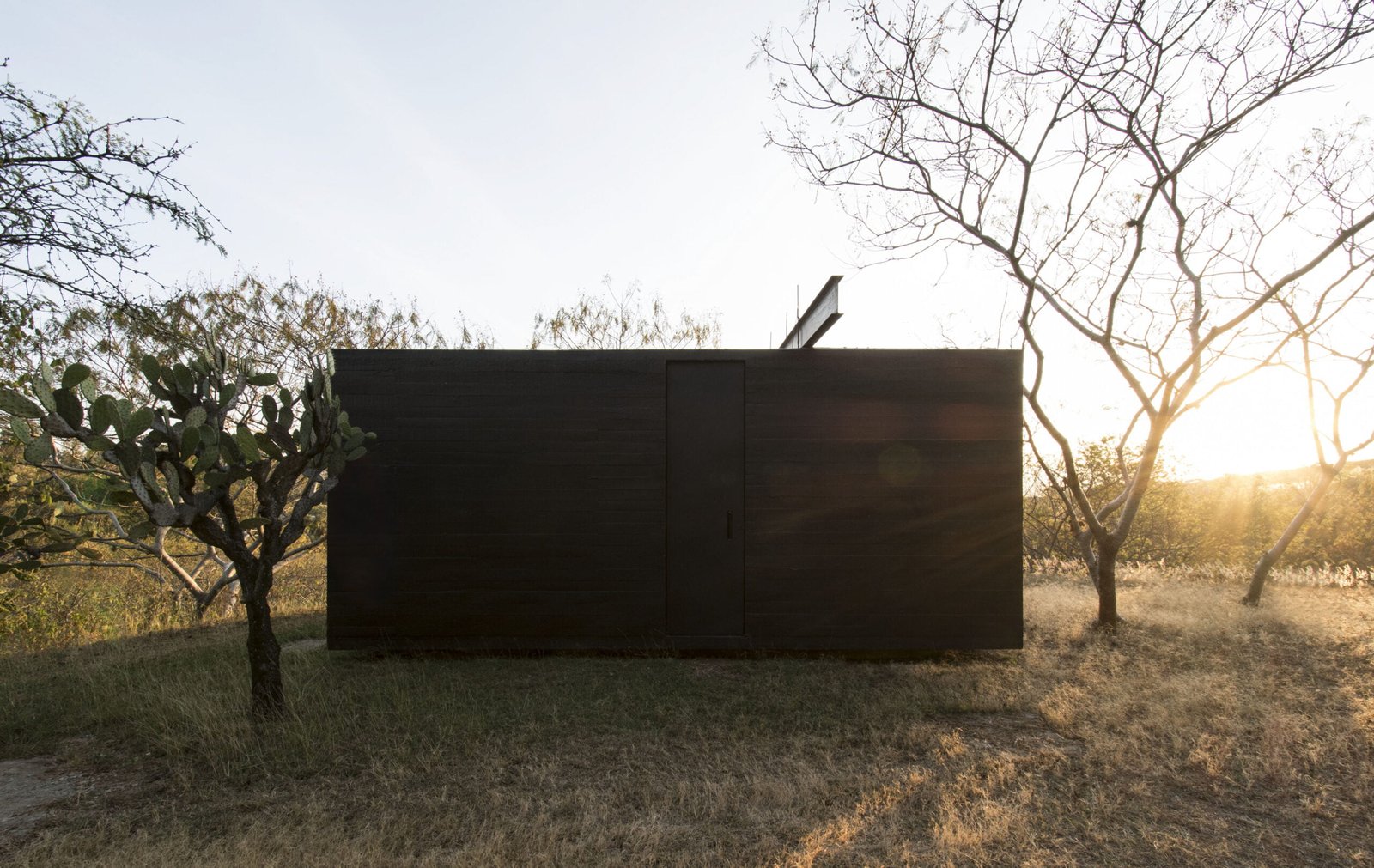Es una construcción de concreto, de bajo mantenimiento, pintado de color negro en el exterior para minimizar el impacto visual sobre el paisaje; una caja cerrada en tres de sus lados para mantener la privacidad y una cara totalmente abierta a la vista del valle y la ciudad. El proyecto aparece de una manera suave y pacífica sobre el terreno, que se aligera en el paisaje aparentando flotar al tener un área de cimentación menor que el cuerpo principal que se desplanta a unos centímetros del nivel del suelo, sensación de livianez que por las noches se potencializa gracias a la iluminación perimetral en su base inferior y el color negro de los muros.