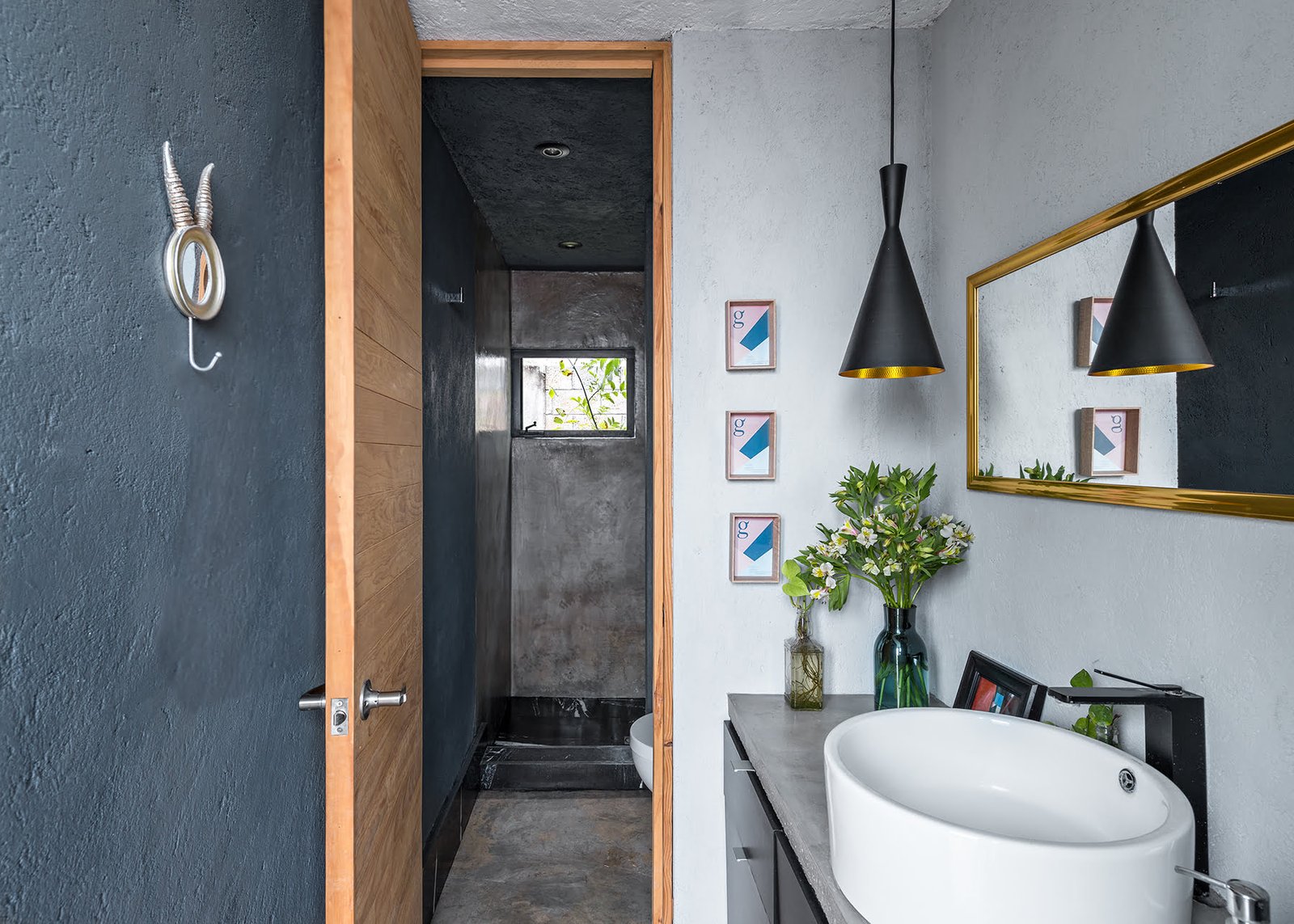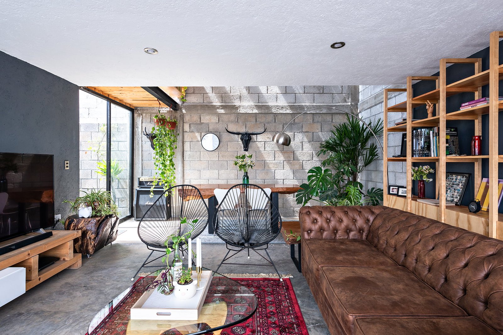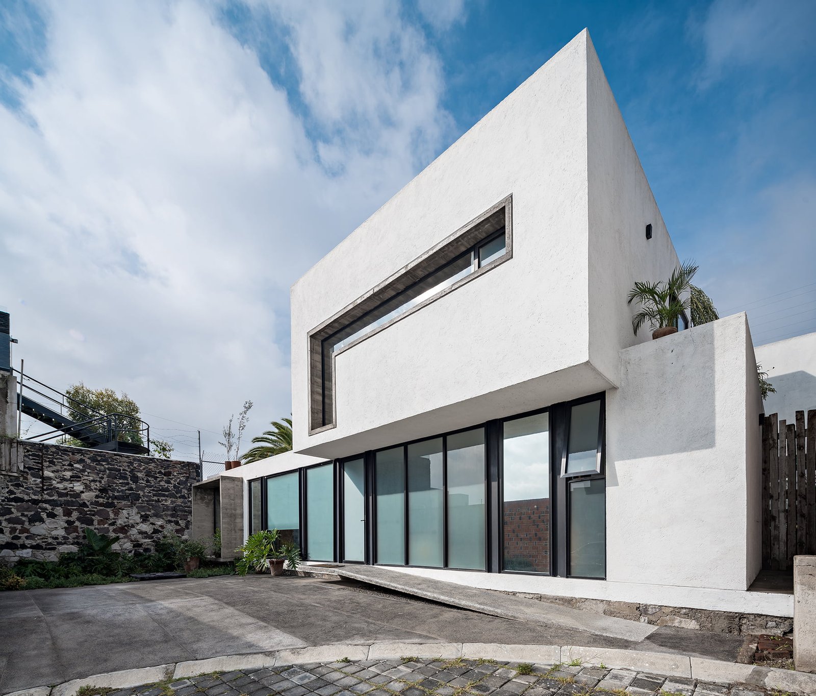 Dos cajas intersectadas como esquema compositivo resuelven las necesidades planteadas; un programa completo y habitable en una sola planta, y otro nivel de una habitación con acceso independiente, y en una próxima etapa consolidar la conexión directa entre estas cajas desde el interior. Que la vivienda se habitará por 2 o en 2 momentos distintos o para 2 usos distintos, pláticas iniciales con el patrono del encargo. Estas “2” cajas sueltas e independientes de las colindancias, que permitan el paso del viento y la luz para todos los espacios, garantizando una habitabilidad y salud de la vivienda.