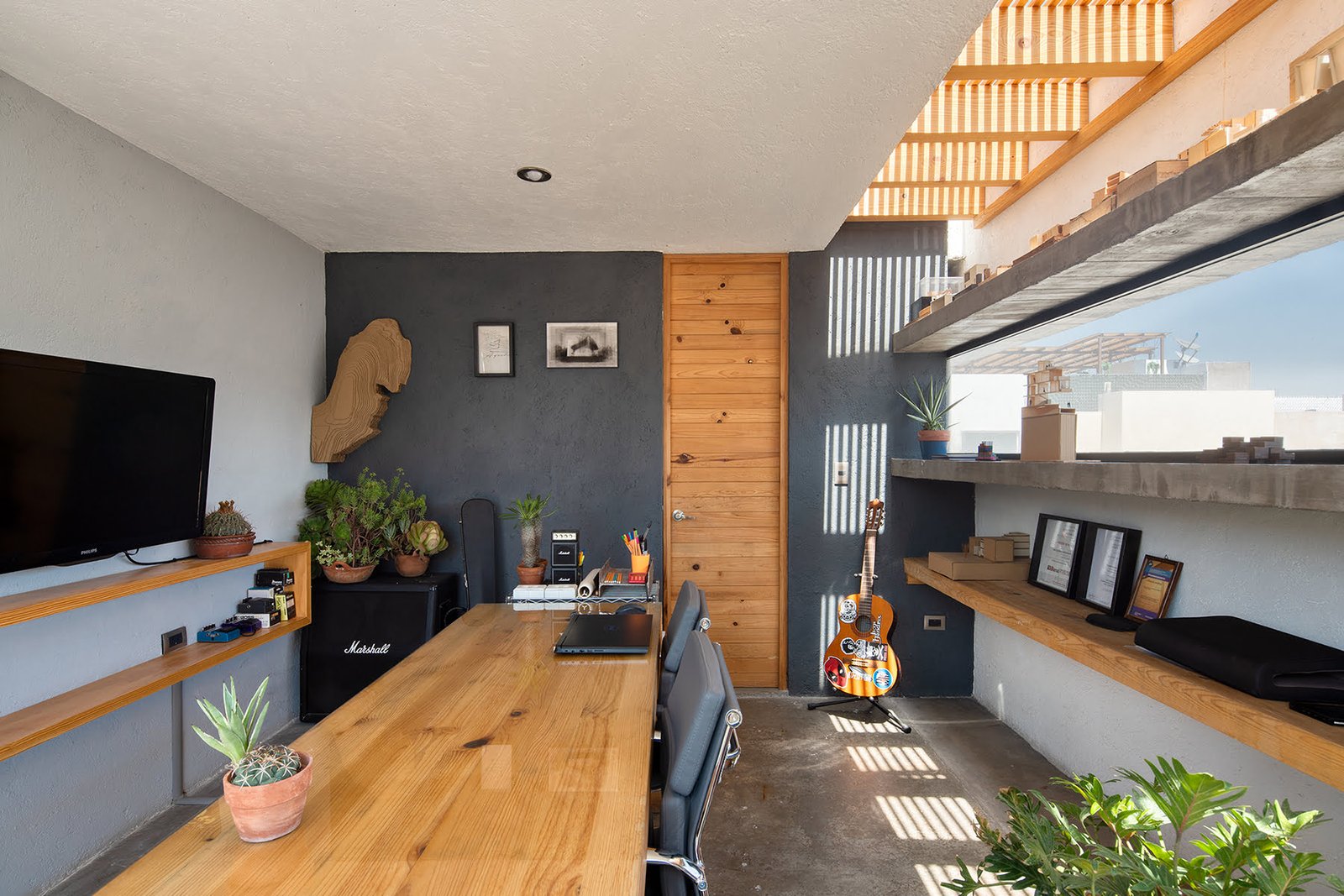 Se contrató el proyecto ejecutivo y construcción de la obra, el primer ensayo para formar un equipo de trabajo, en escritorio y campo. Hacer una casa, esculpir el tiempo con los sueños propios y ajenos construyendo la atmósfera del lugar. Ópera prima, del taller: TEA.
