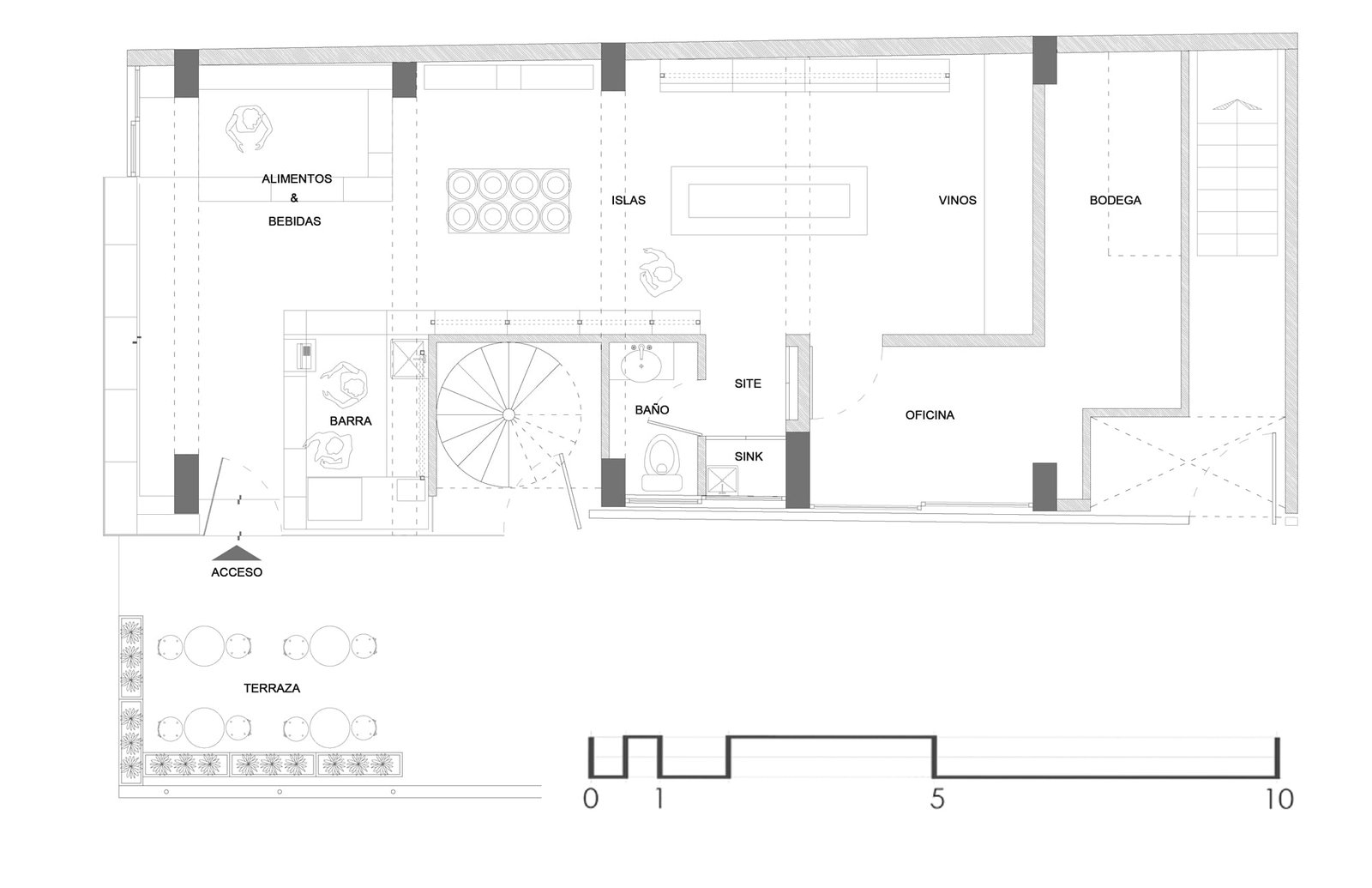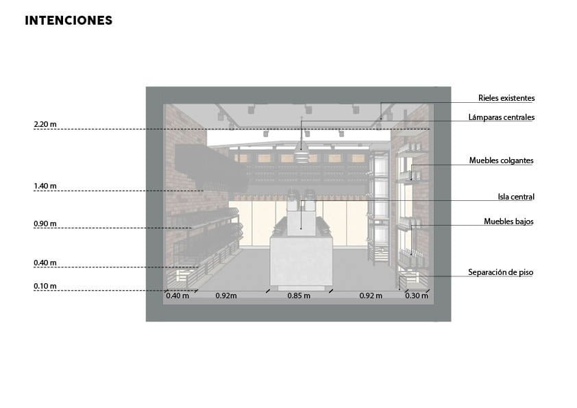 Boutique de productos naturales y a granel, en donde la intención principal en primer lugar fue el generar una identidad para la marca y en segundo un espacio innovador y divertido que se diferenciara de la competencia, ademas de generara una tendencia. Lo anterior se logra gracias a la elaboración de diferentes piezas de mobiliario que provocan una interacción constante con el usuario. Elementos colgados del techo y piezas de mobiliario modular se complementan para plasmar un ambiente acogedor con un recorrido claro que eficienta cada metro cuadrado de la tienda. El proyecto de iluminación se compone de un esquema de luz directa, provista por spots distribuidos en rieles, que en combinación con una luz indirecta, generan diferentes ambientes dentro del local comercial resaltando ciertos elementos decorativos y productos.