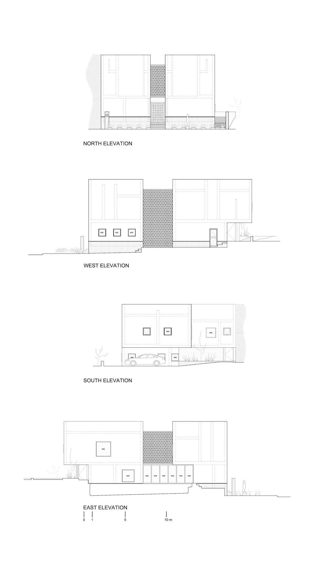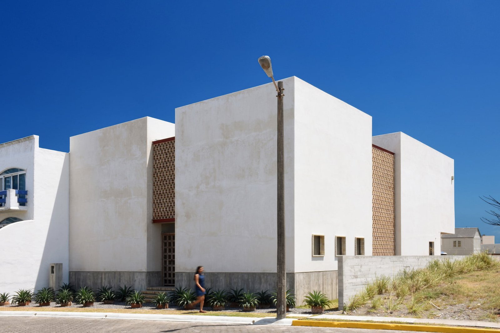 El proyecto se sintetiza en tres volúmenes independientes, conectados por medio de un puente delimitado por tres muros celosía a base de soleras de barro recocido dispuestos de la misma forma en la que se levanta una torre de naipes, reinterpretando los remates de muros y balcones presentes en algunas de las construcciones tradicionales de la región.