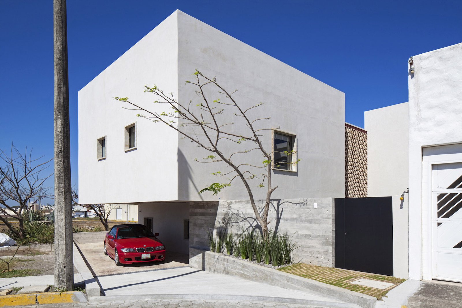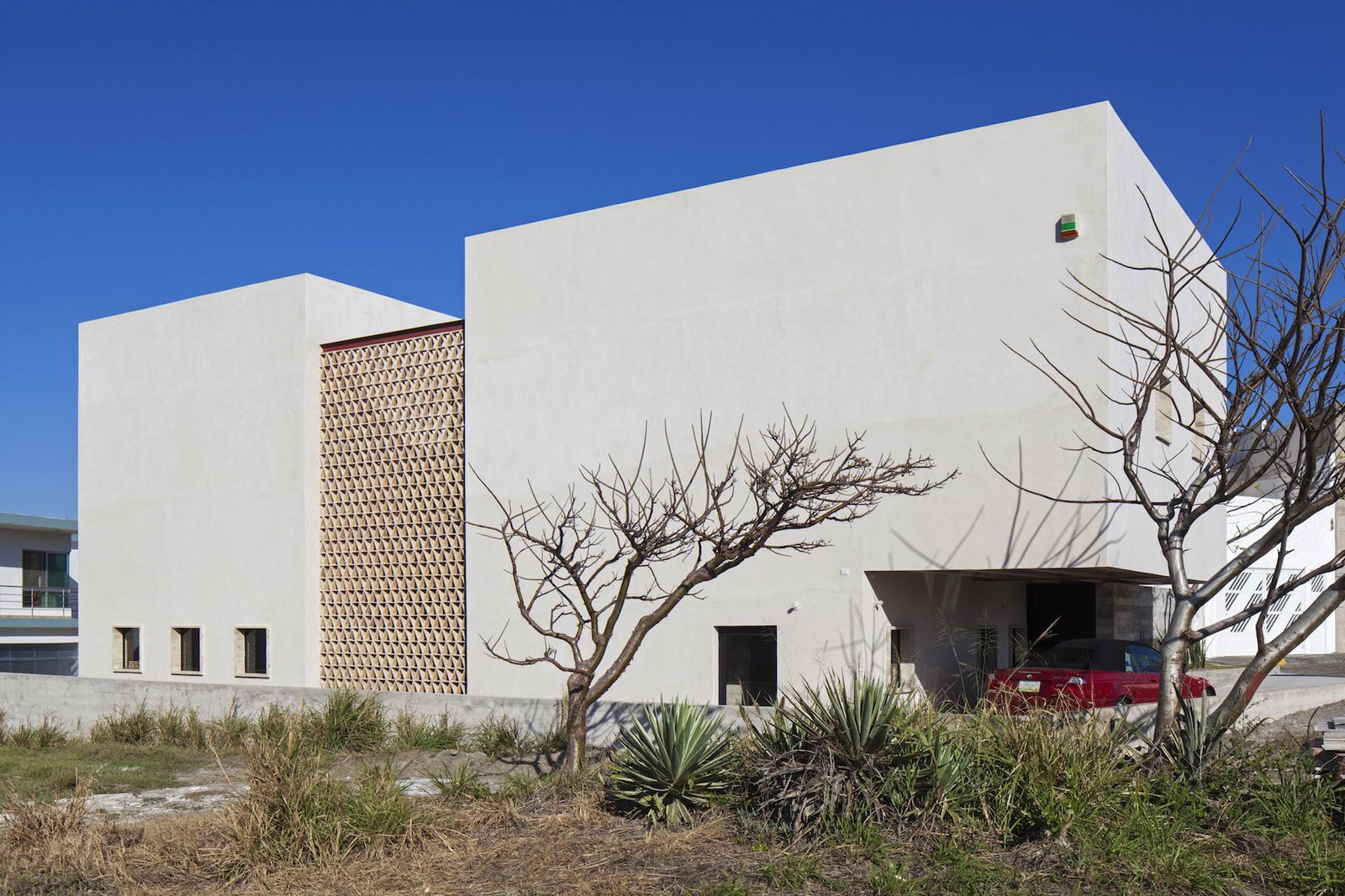 Es una vivienda unifamiliar ubicada a 400 metros del Golfo de México. Su sólida volumetría la dotan de presencia y protección contra las constantes rachas de viento del norte, la humedad y los altos niveles de corrosión de la costa.