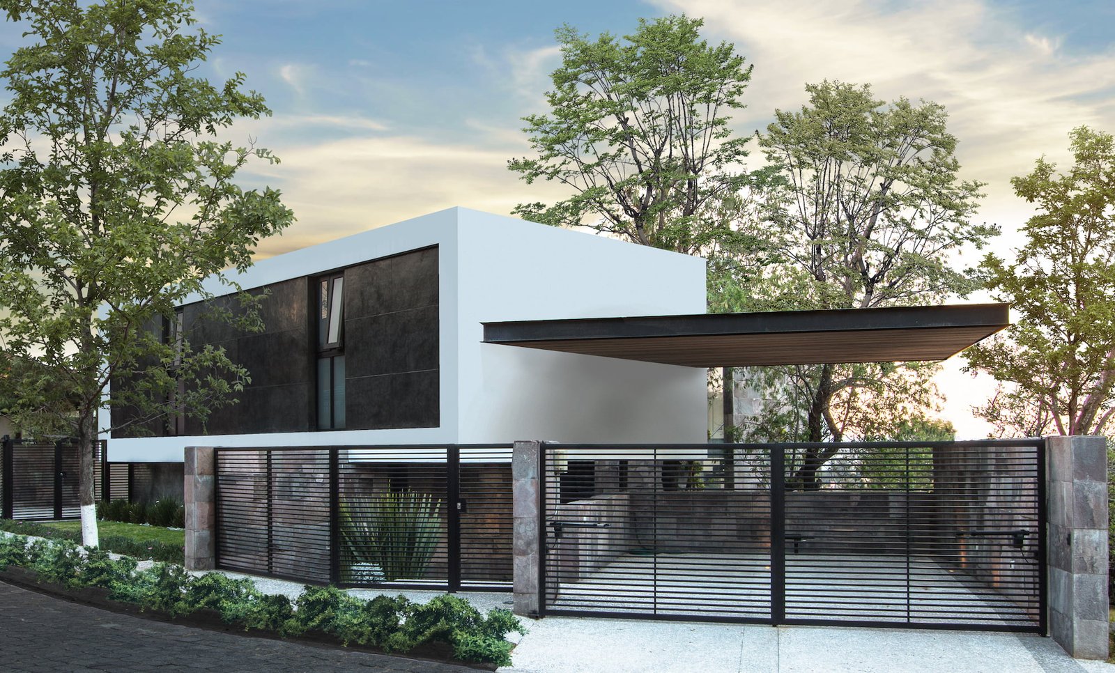 Al cuerpo principal de la casa se le añadió en una segunda etapa, un amplio salón de fiestas que también goza de vista al jardín y cuenta con un bar interior. El estilo de la casa se mantiene moderno y atemporal al mismo tiempo, ya que sus materiales y paleta de colores son neutros. En la fachada destacan las sombras que dan los distintos volúmenes, y las texturas de la piedra volcánica arqueológica en tonos cafés grisáceos que se mezcla con el concreto aparente, y perfiles de acero expuestos en la fachada. Para los interiores se eligió la madera de nogal.