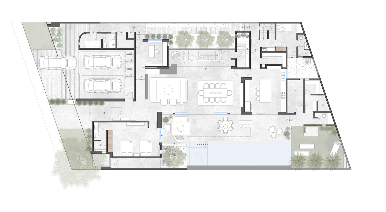 Esta casa cuenta con un particular programa arquitectónico, donde cada espacio fue concebido con la intención de mejorar la relación entre el espacio interior y el exterior, tanto visualmente como físicamente.