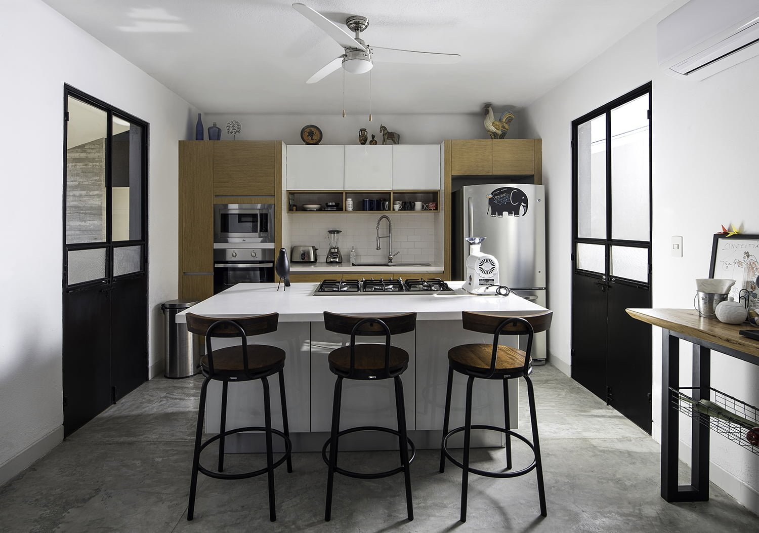 El área techada del estacionamiento funciona además como una extensión del patio, convirtiéndose en un área flexible de estar.