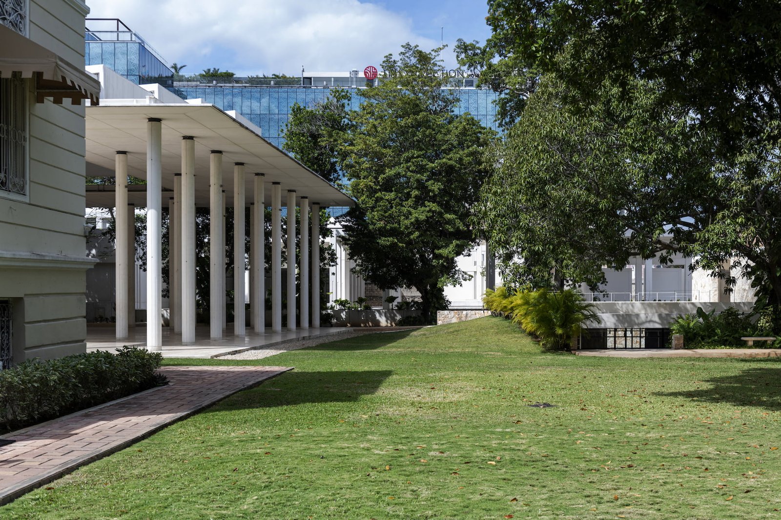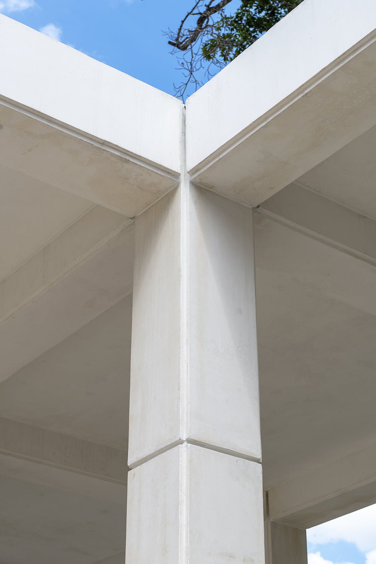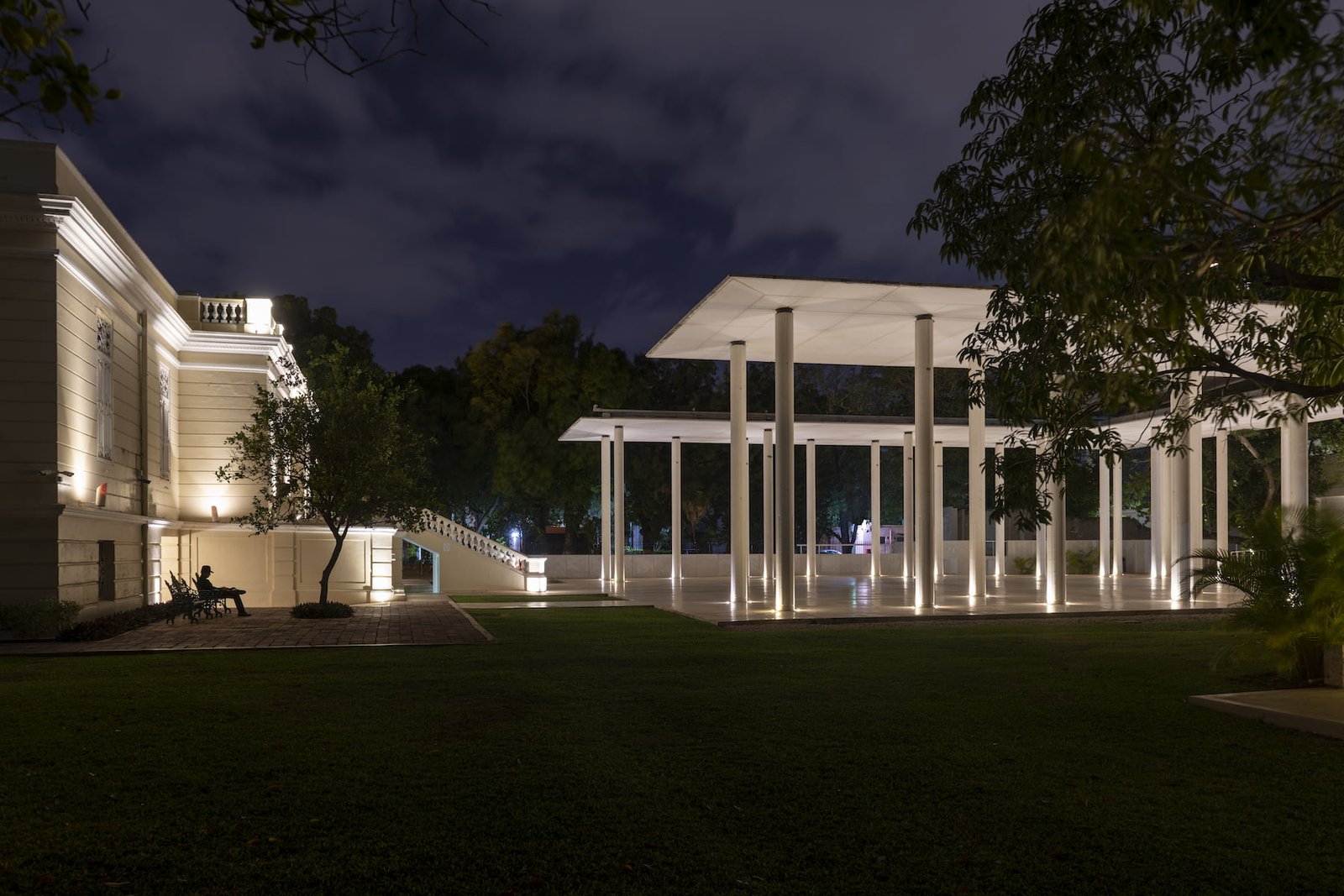 De este modo, el diseño propone una serie de pórticos que generan recorridos y envuelven espacios públicos exteriores y armónicos. Las columnas y cerramientos enmarcan vistas hacia la casa, los jardines y el pabellón, integrando visualmente todos los elementos. El proyecto busca generar un espacio público, entendiendo la arquitectura como lienzo material y espacial, para atestiguar su paso en el tiempo, así como el abrazo de las sombras que regalan la luz y el cielo yucateco en las superficies construidas.