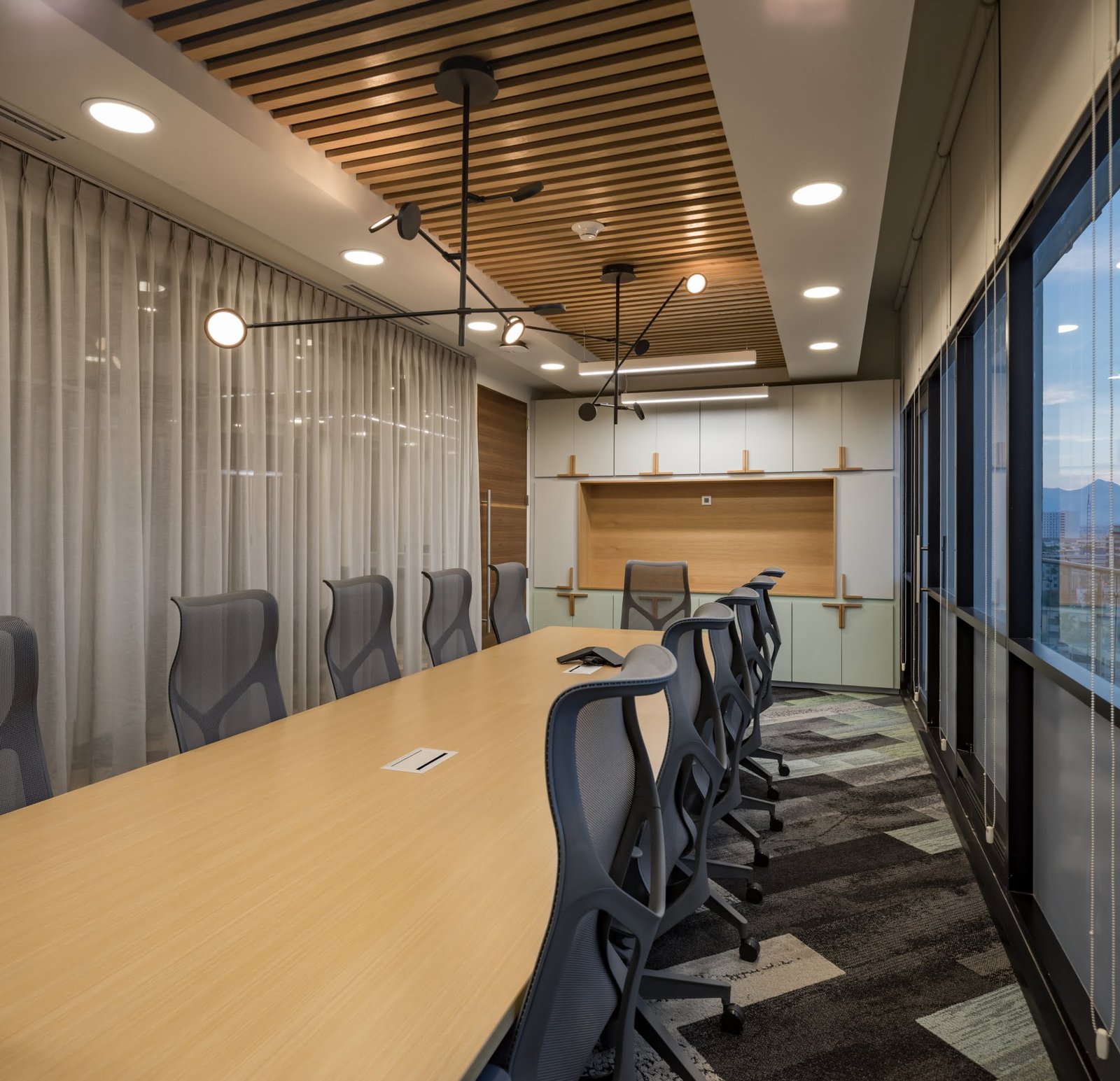 El corporativo cuenta con ocho áreas de trabajo en donde cada uno de ellos tiene su propia identidad, pero siendo siempre parte de un mismo lenguaje y comunicación entre ellos. Los pisos de estas áreas están revestidos con una alfombra que posee un diseño y una paleta de colores diferentes para cada nivel, guiando al usuario hacia donde tiene que dirigirse gracias al juego de formas y colores que este posee.