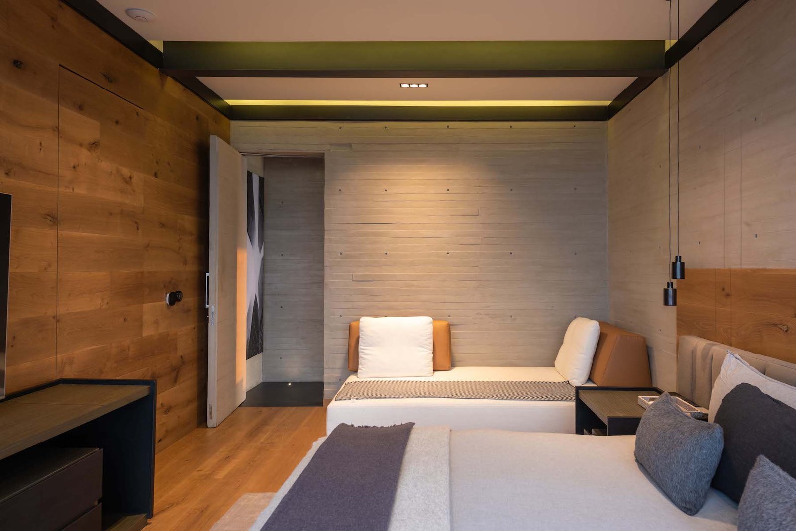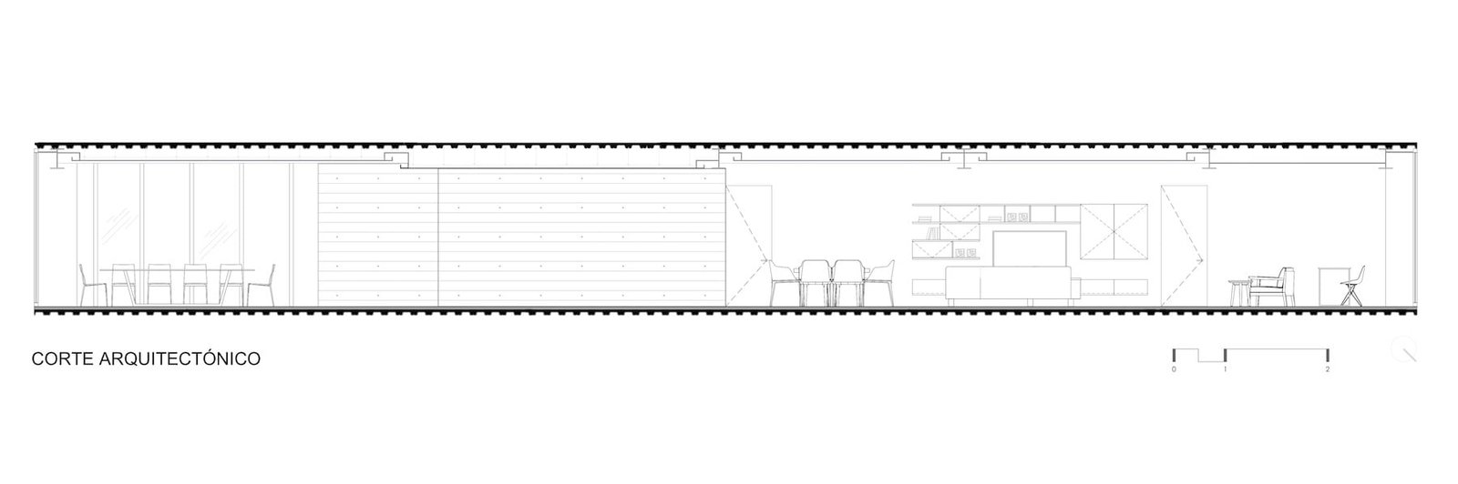 Los materiales utilizados buscan crear un espacio limpio y contrastante; la combinación entre el piso oscuro, vigas aparentes y plafones blancos; tienen como resultado un espacio elegante en su naturaleza.