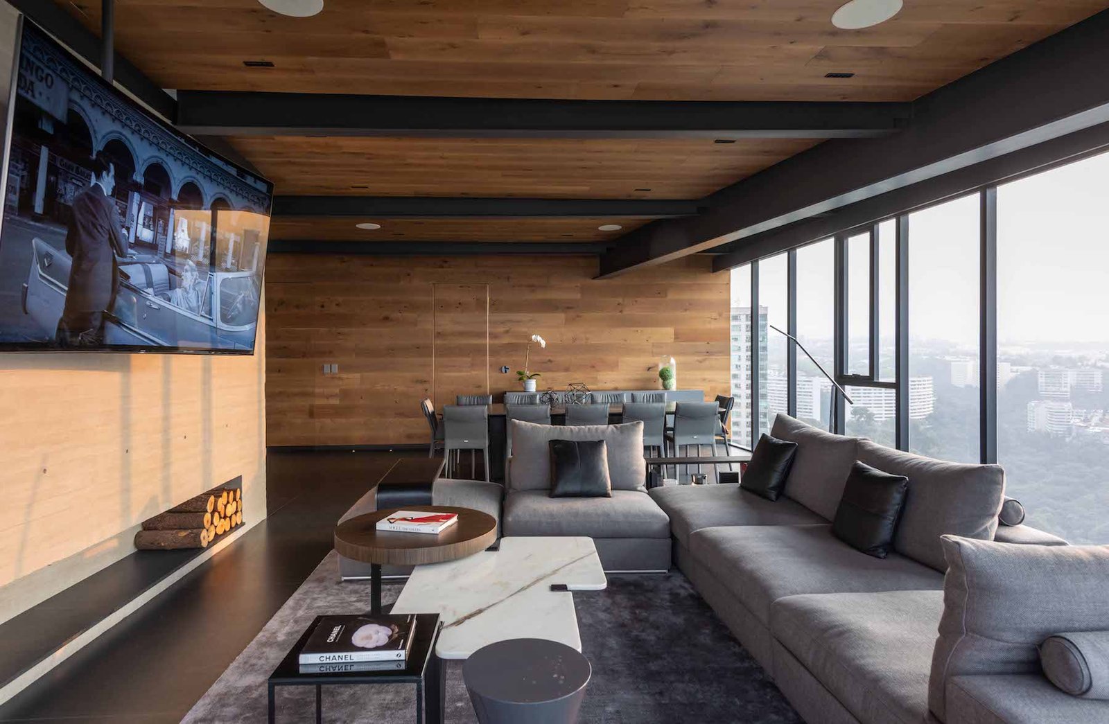El proyecto se encuentra en Bosques de las lomas, cuando el cliente compro el departamento, se decidió modificar toda la distribución por completo, logrando una propuesta en donde se buscó que la mayoría de los espacios tuvieran ventilación e iluminación natural; el objetivo principal fue aprovechar la vista al conectar los espacios con el exterior.