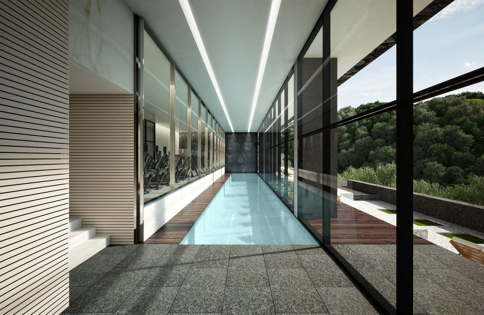 En los departamentos se lograron espacios cómodos, generosos y llenos de luz; con grandes ventanas que aprovechan las vistas del paisaje y de la barranca. Se puso particular atención en evitar que la sobriedad de la elegancia diera un resultado frío y sin personalidad para lo que se propusieron acabados de alta calidad en un correcto balance entre calidez y confort como madera, piedra y acero inoxidable para lograr una atmósfera completa.