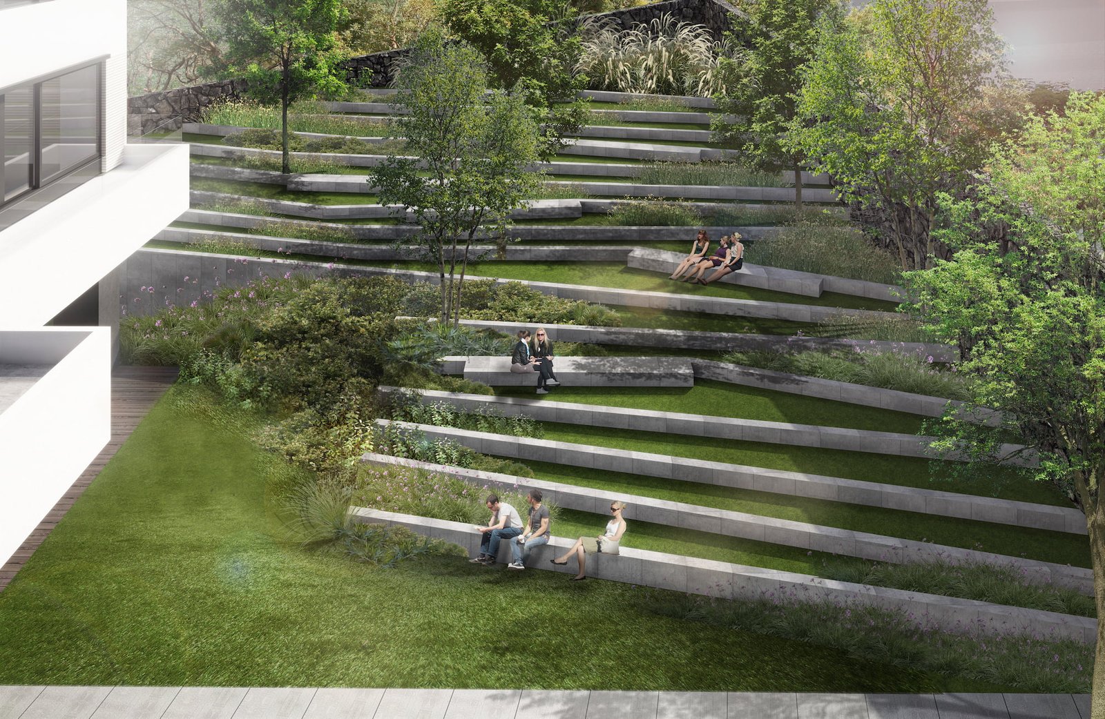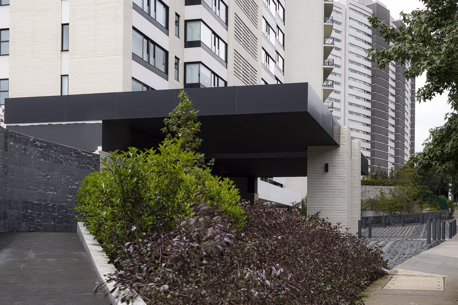 En equipo con el cliente se decidió que la imagen exterior del edificio fuera blanca para destacar en el entorno verde que lo rodea. Se instaló una fachada ventilada de ladrillo de cerámica blanco entretejido con paneles de concreto prefabricado también en color blanco. La unión de todos los elementos y el nuevo programa dieron como resultado una estructura original que ahora destaca por sus acabados, grandes ventanales y una perfecta atención a la escala y proporción. En el interior todos los detalles y la combinación de la luz con generosos espacios confortables, describen en formas el lujo solicitado por el cliente.