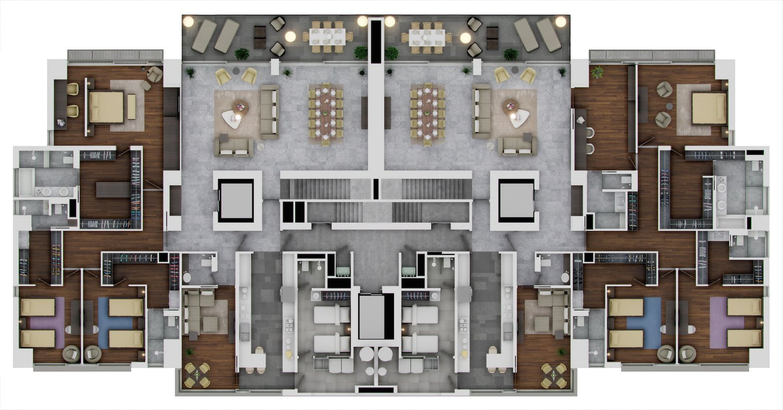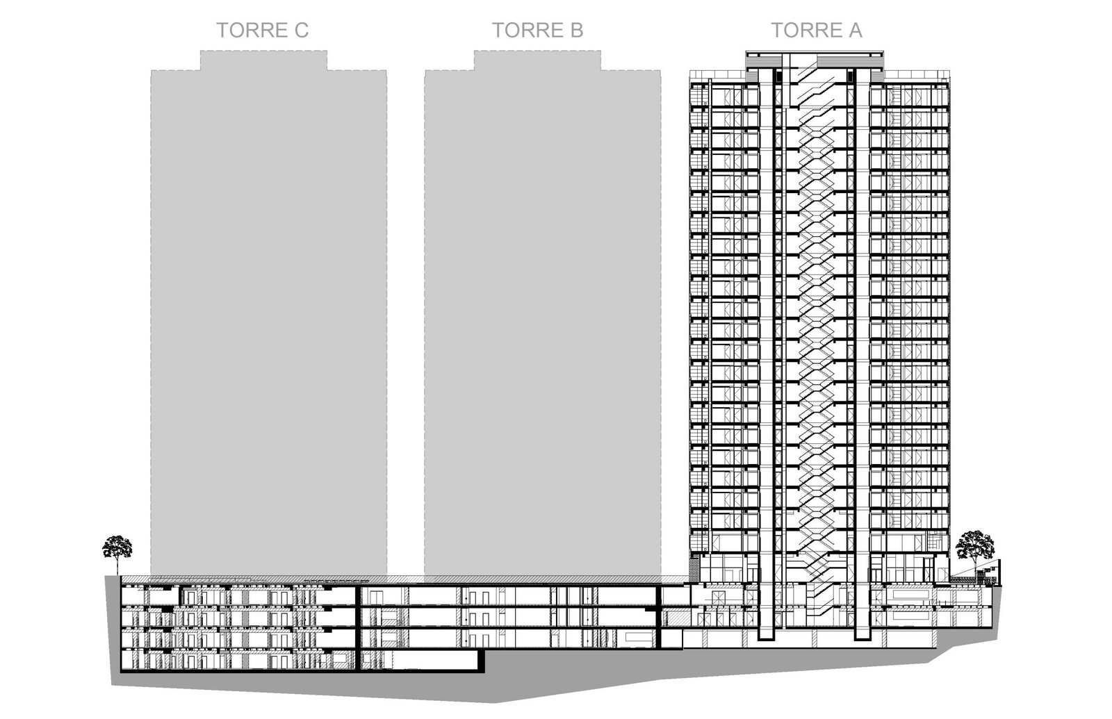 Las solicitudes del cliente fueron las siguientes: rediseñar las fachadas, los departamentos y solucionar los problemas del núcleo de servicios por lo que la primera tarea fue lograr la mayor eficiencia espacial y encontrar el espacio que a primera vista hacía falta. En un primer paso se concentraron todos los servicios en núcleos como escaleras, ductos, cuartos de servicio, lavandería, baños y closets, para lograr la mayor amplitud y eficiencia.