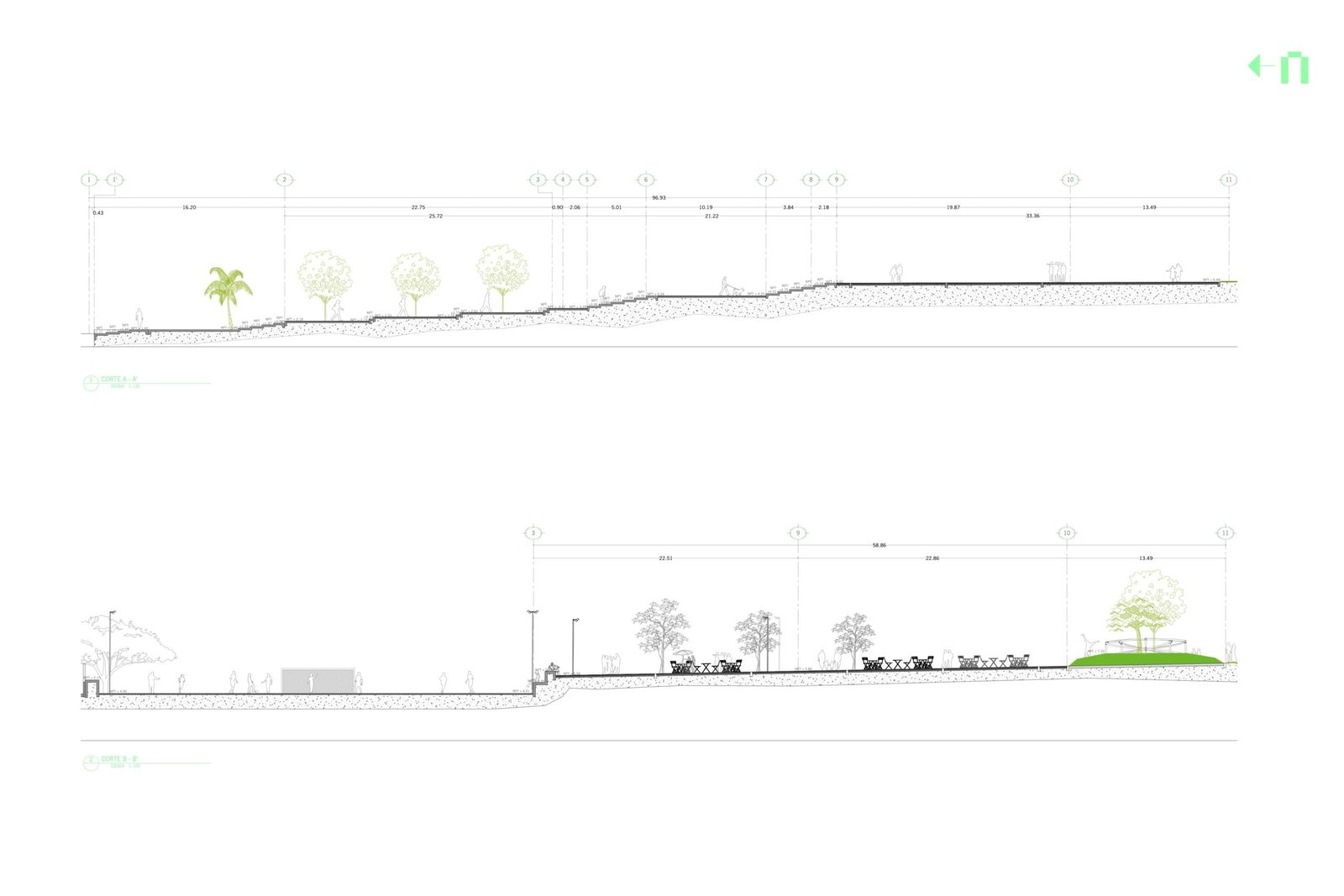 En la zona más extensa del proyecto, se buscó el área de explanada sin cambios de nivel que permitieran el libre tránsito peatonal con accesibilidad universal.