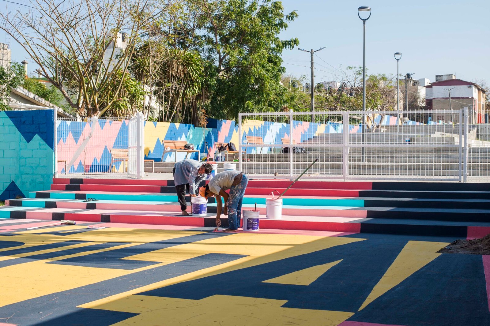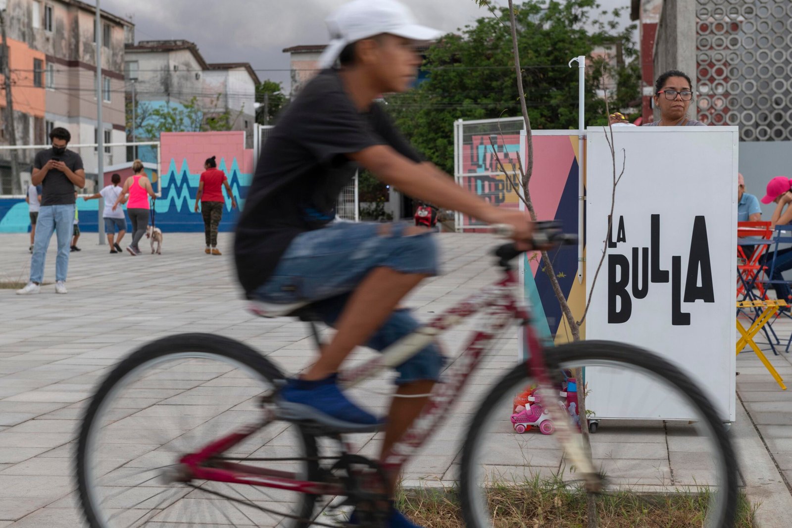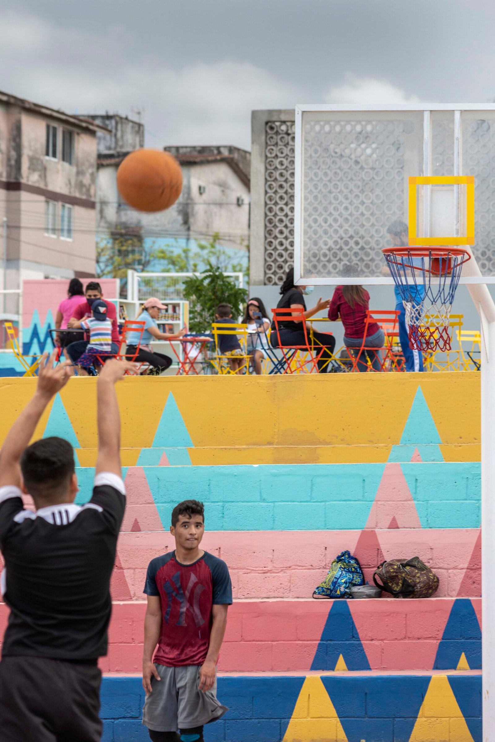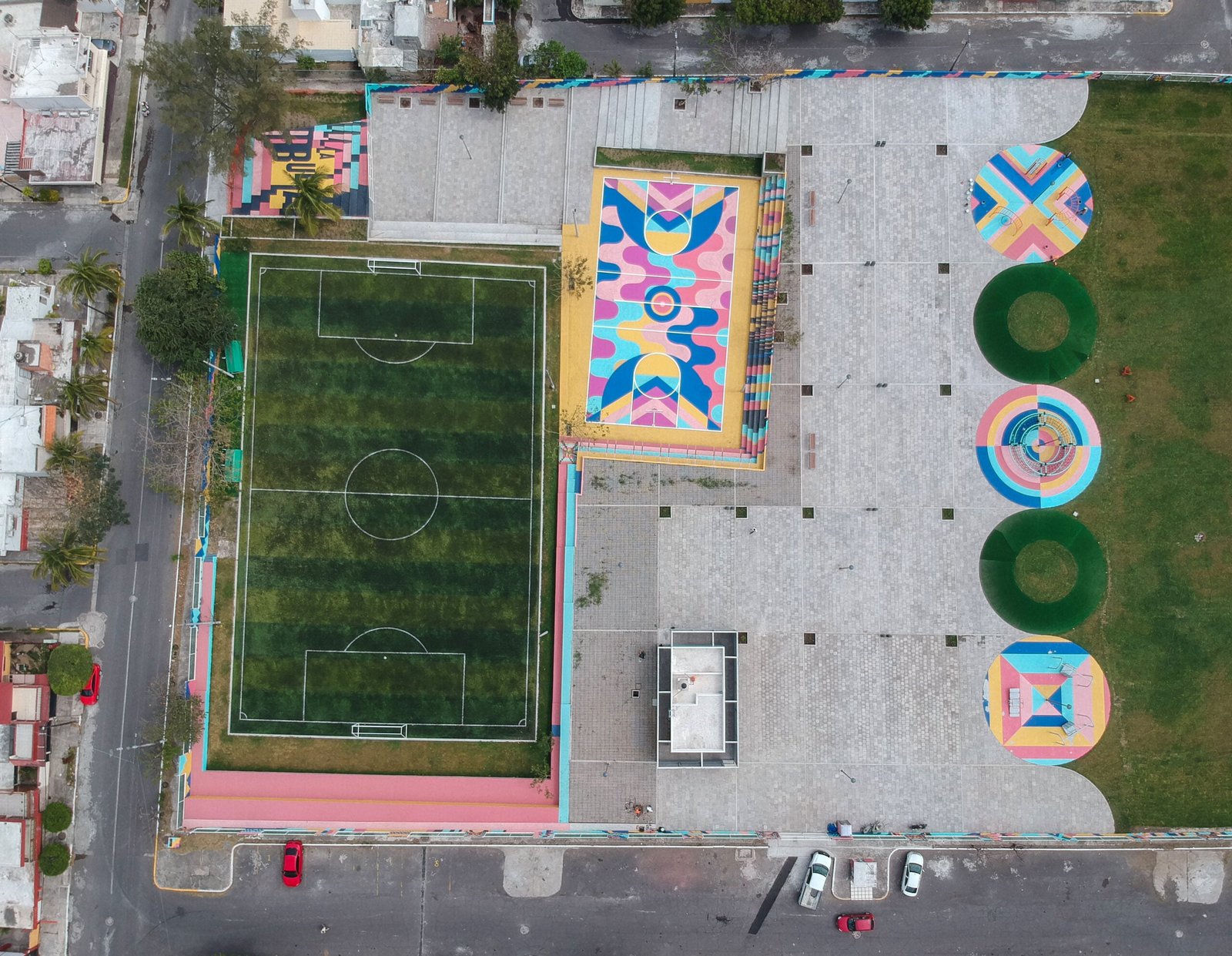 El concepto parte de los espacios existentes, más la generación de áreas de interés accesibles para todas las edades y condiciones de vida de la comunidad. En colaboración con un estudio de diseño se creó una estrategia inspirada en la vida diario de los jarochos. A través de los colores buscamos la identificación de la gente, la música, el baile, las risas, el juego de la calle, resultando un movimiento que genera patrones de acuerdo a las ondas producidas por estos sonidos. Dando como resultado “La Bulla” un espacio lleno de color donde todos son bienvenidos.