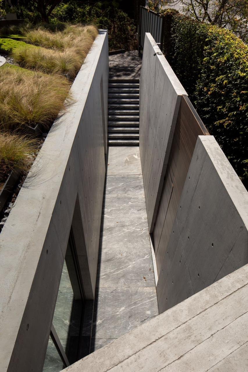 Para respetar los niveles de desplante actuales de la casa, así como la vegetación, se diseñó en base al respeto de la vegetación existente y generando más área verde bajo el formato de una azotea verde.