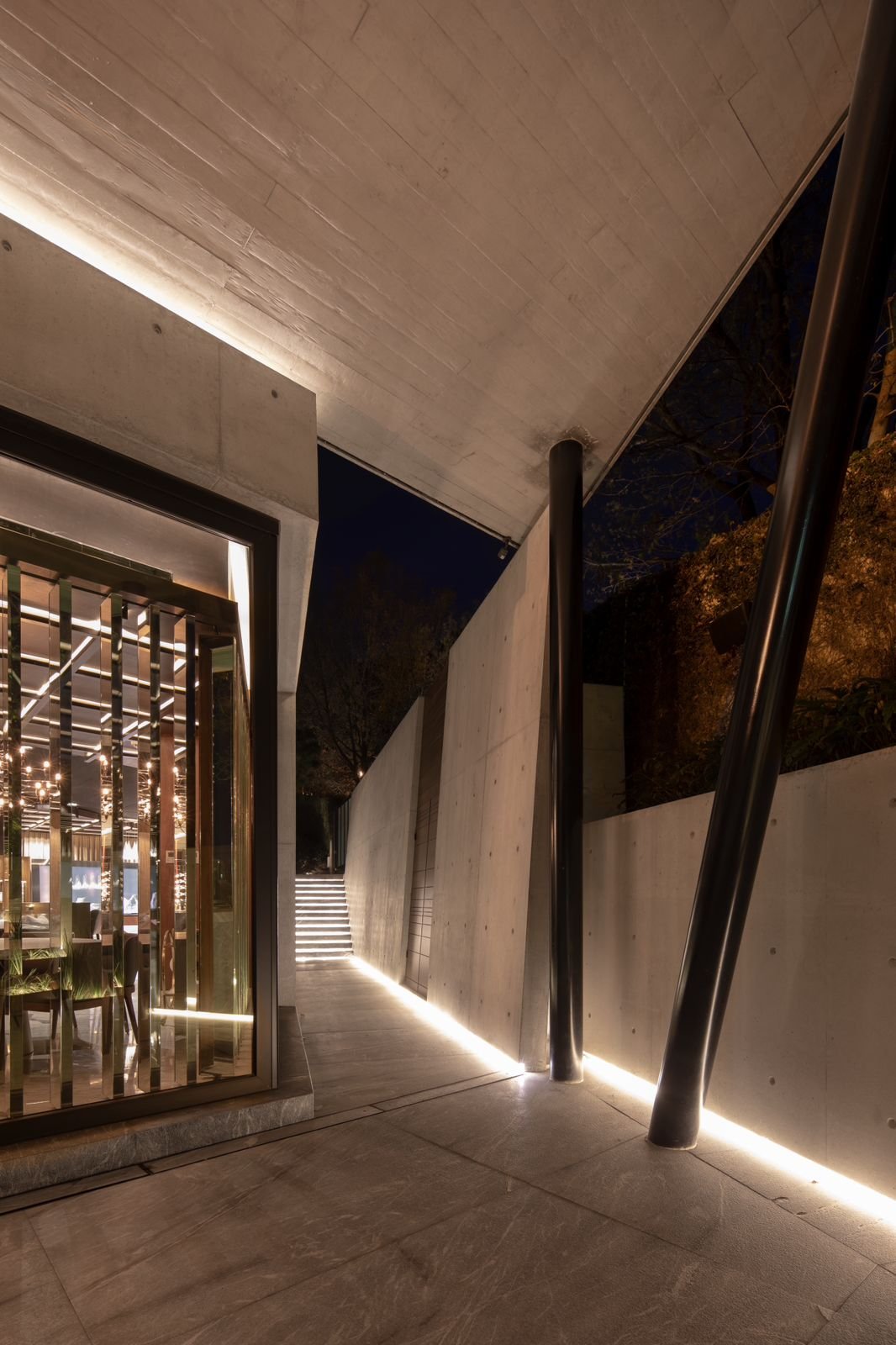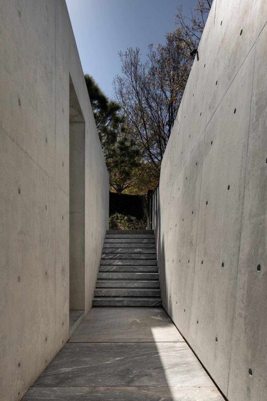 - Materiales naturales: concreto aparente en el exterior y una mezcla de materiales en el interior.
