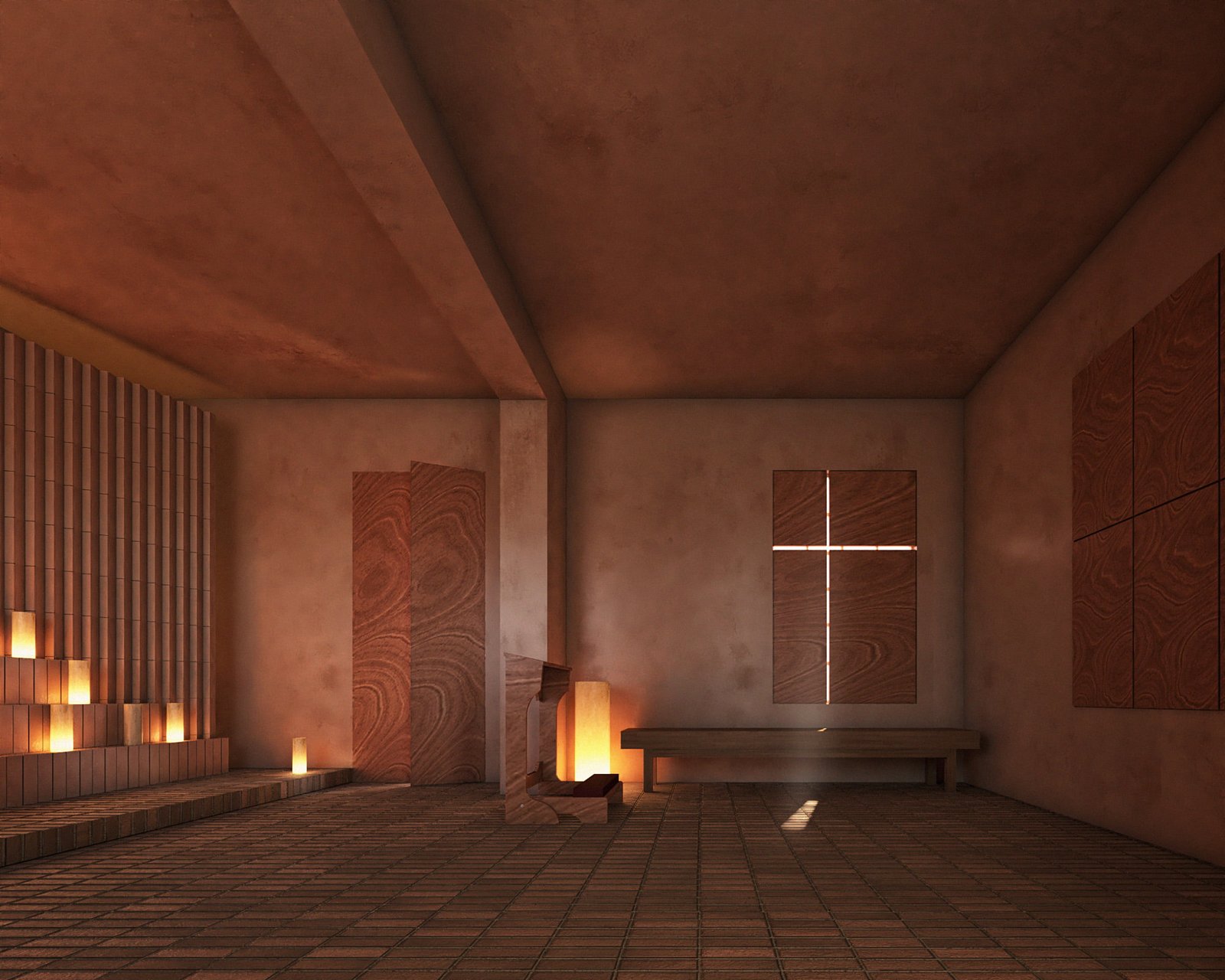 identidad. La composición interior del espacio se desarrolla en sentido longitudinal, aprovechando los elementos existentes que enmarcan y profundizan la perspectiva desde la que el observador recibirá un estímulo sensorial instantáneo, resultado del manejo controlado de luces ysombras naturales, generando una atmósfera íntima en conjunción con lo divino.