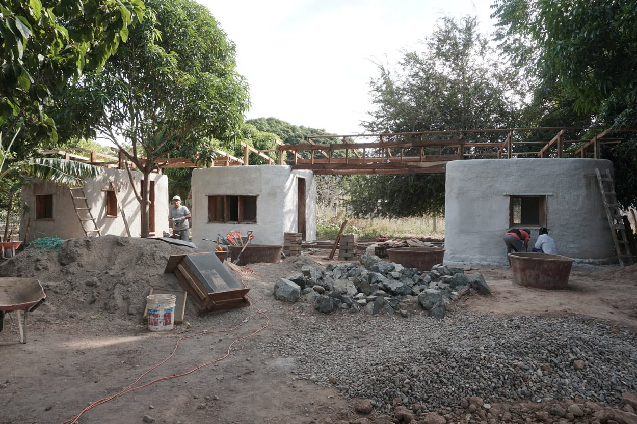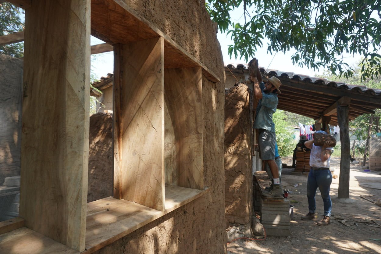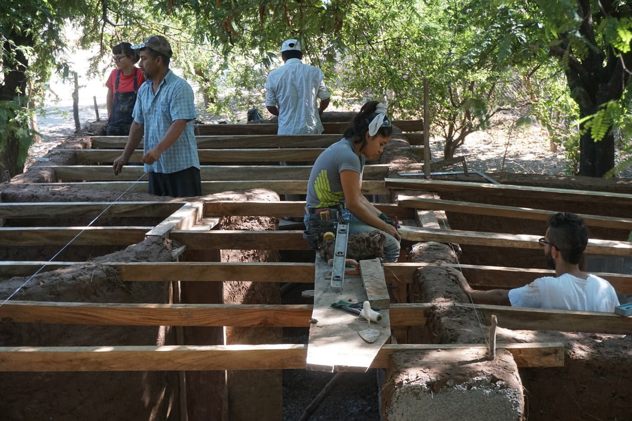 Voluntarios, familias y profesionales trabajamos en el lugar en cada etapa y aspecto de la construcción, desde la recolección de los materiales de libre acceso en el territorio (suelos arcillosos, las fibras naturales y piedras de cimentación) hasta las actividades que rodean al programa: hospedaje, la comida, logística y la construcción misma. Es así que Programa VACA A.C. sirve como una plataforma de apoyo a familias en condiciones de alta vulnerabilidad, que sobreviven la pobreza multídimensional y al mismo tiempo es una escuela de buenas prácticas de arquitectura sostenible. Voluntarios y familias refuerzan, aprenden y desarrollan conocimientos constructivos replicables y de bajo costo.