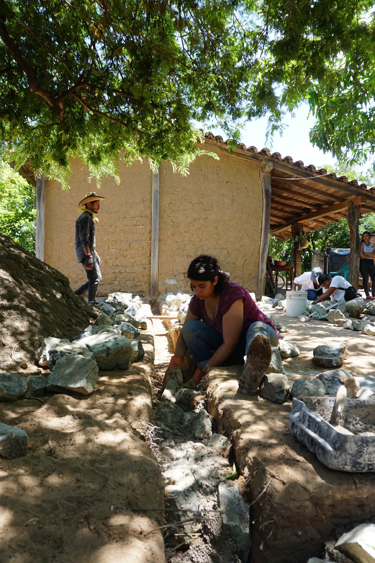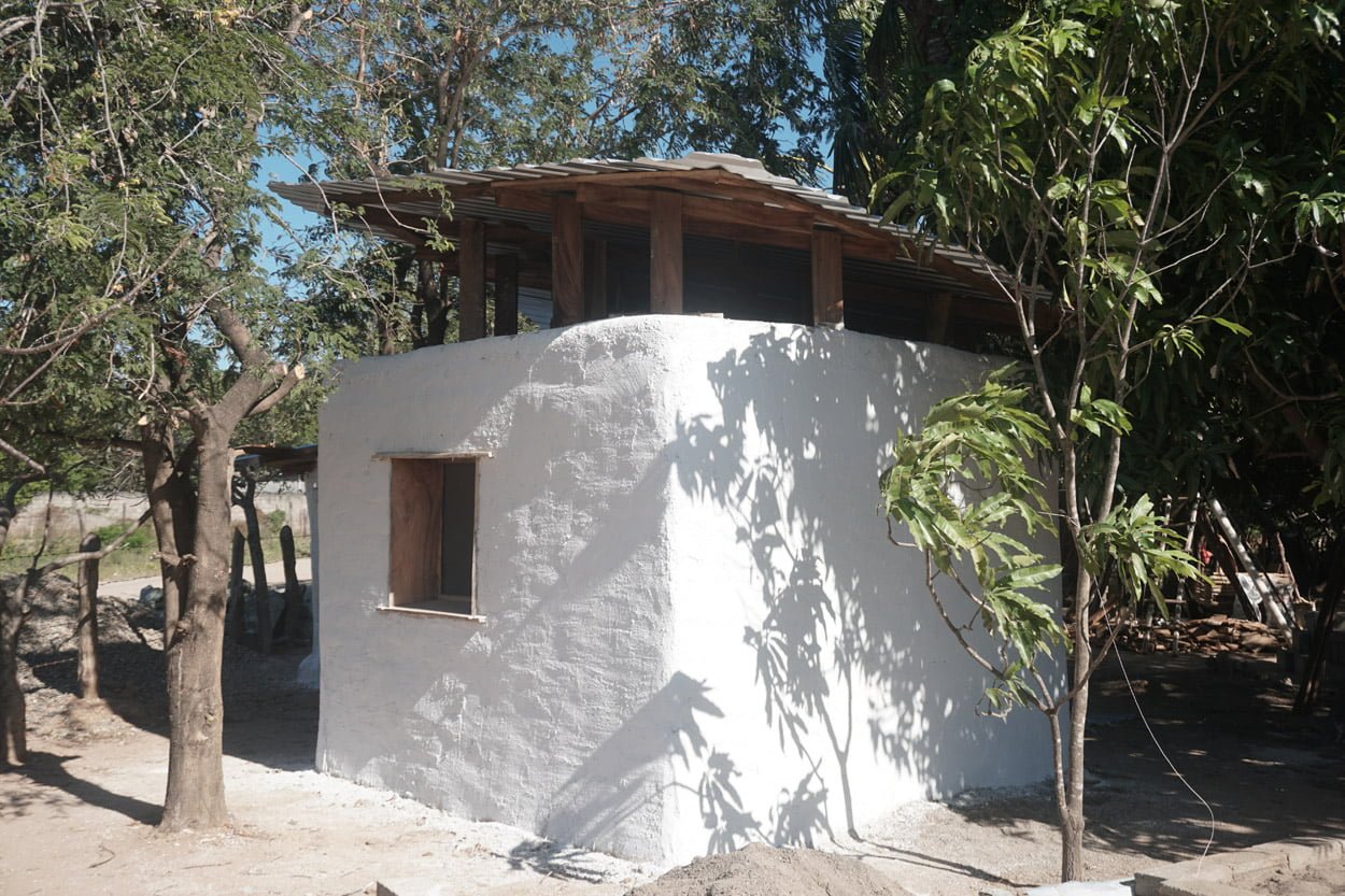 Para el proyecto de reconstrucción de vivienda de Santiago Niltepec se utilizó una técnica mejorada con raíces vernáculas, el Cob o Bla que es una mezcla de suelos arcillosos y fibras naturales de pasto (Zacate Lodo como lo llaman en el territorio) que no necesita moldes ni un secado previo a su implementación. Se construye superponiendo las piezas y entretejiéndolas para crear muros monolíticos que en conjunto con la geometría logran el sistema natural de construcción más sismo-resistente ya que es seis veces más fuerte que el adobe.