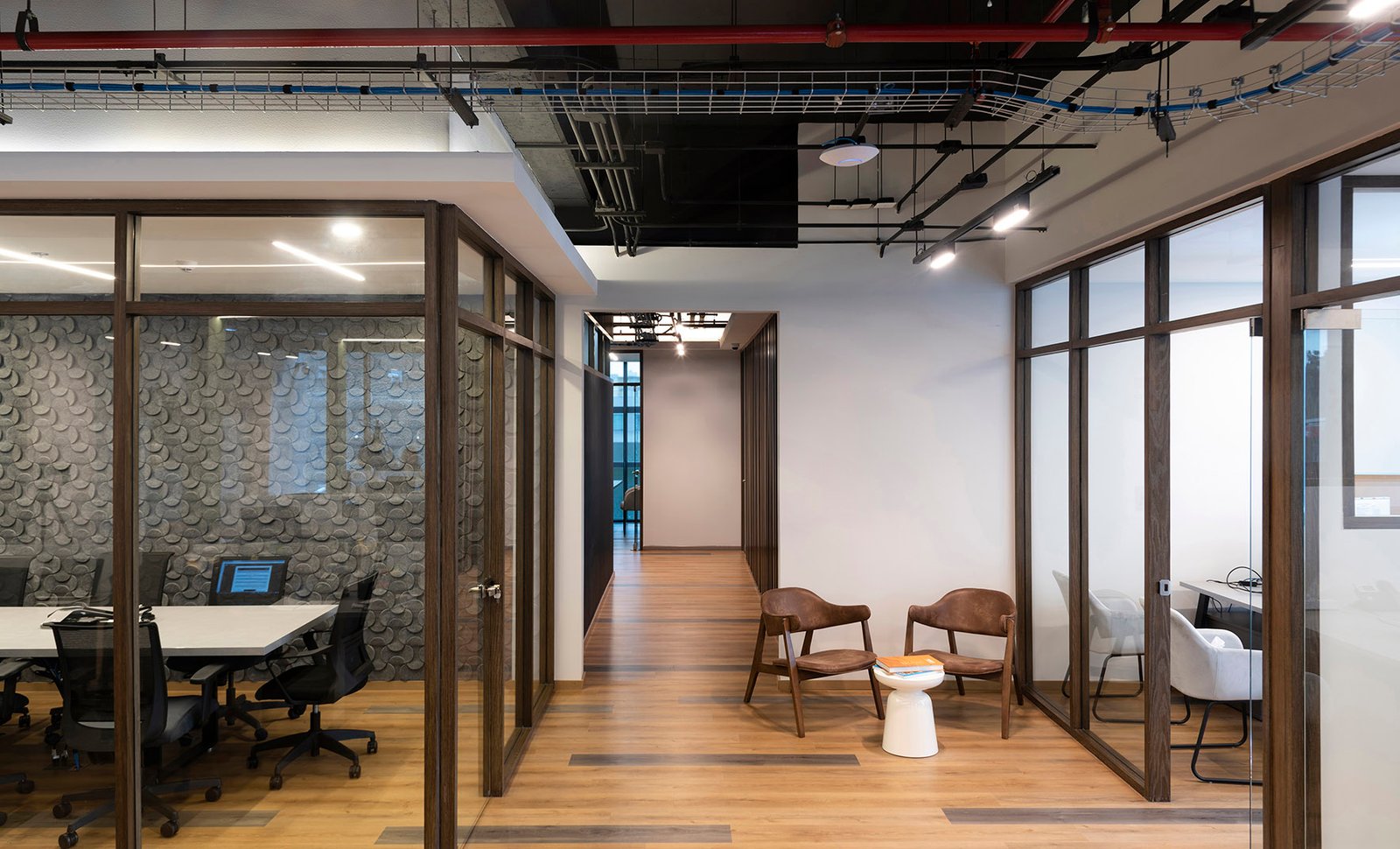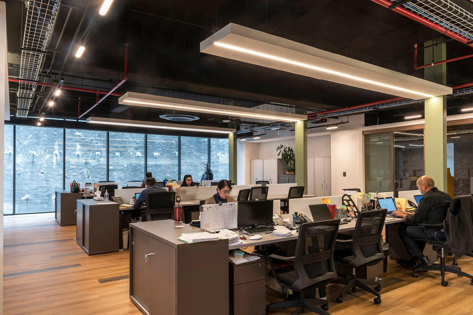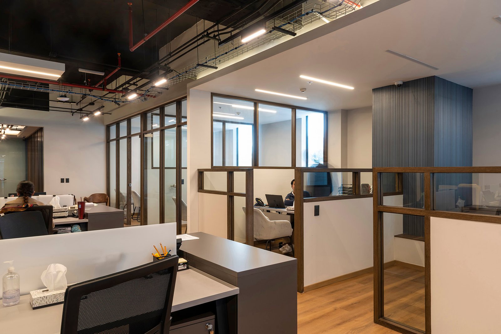 El principio de diseño se relaciona con el proyecto original, un espacio de trabajo abierto con áreas colaborativas y mucha transparencia. La estructura y las instalaciones se dejaron aparentes, delimitando solamente las áreas de los privados, para los que se utilizaron medios muros para enfatizar tanto el espacio abierto como la comunicación. Los únicos espacios cerrados son la sala de juntas y las cabinas de trabajo, que si es necesario se pueden mantener abiertas.