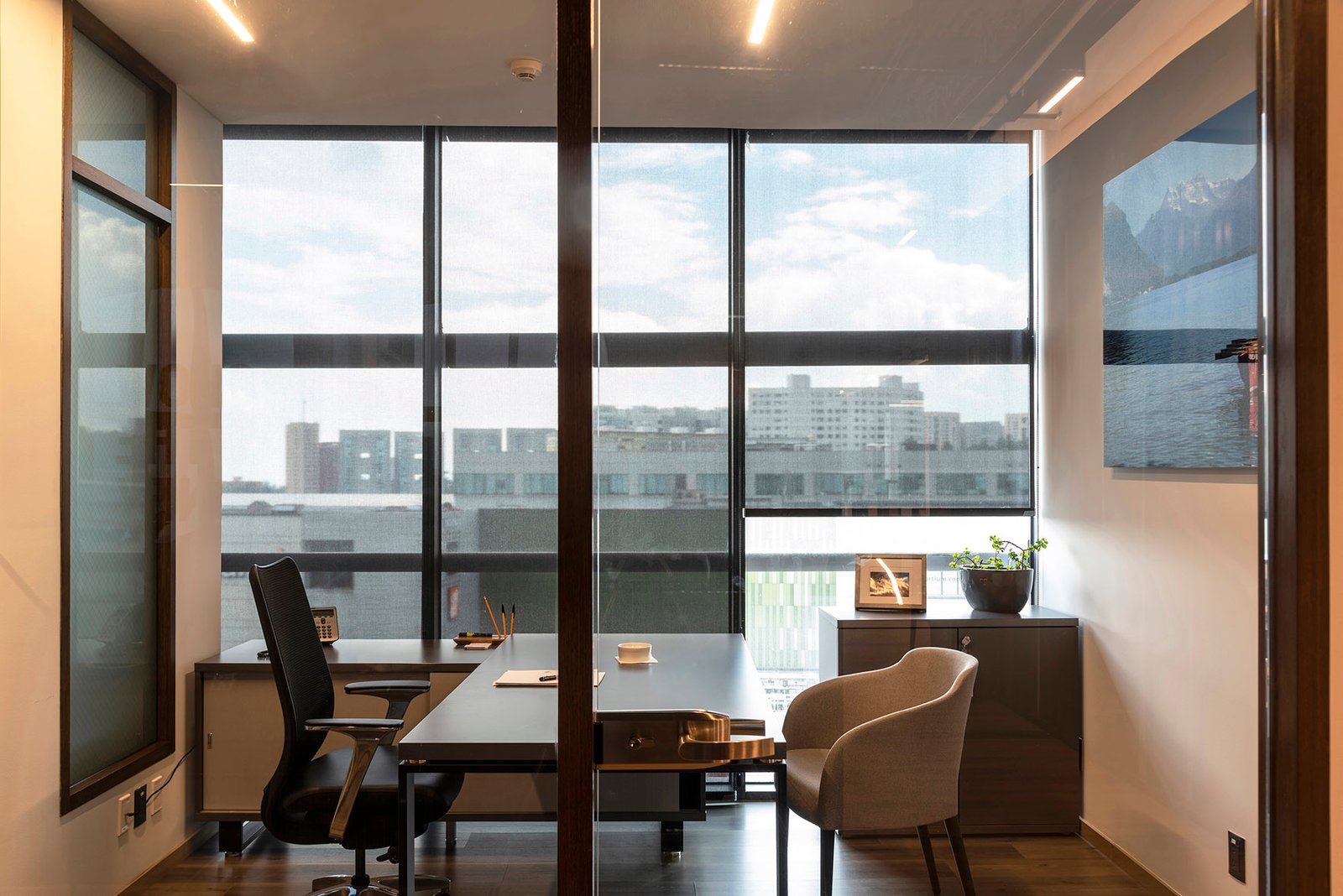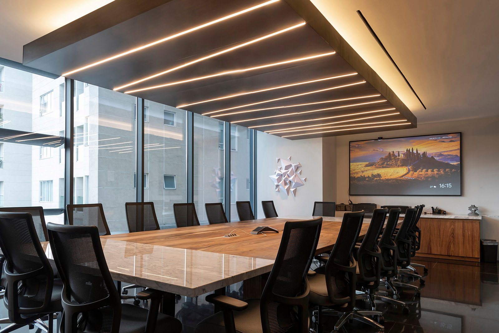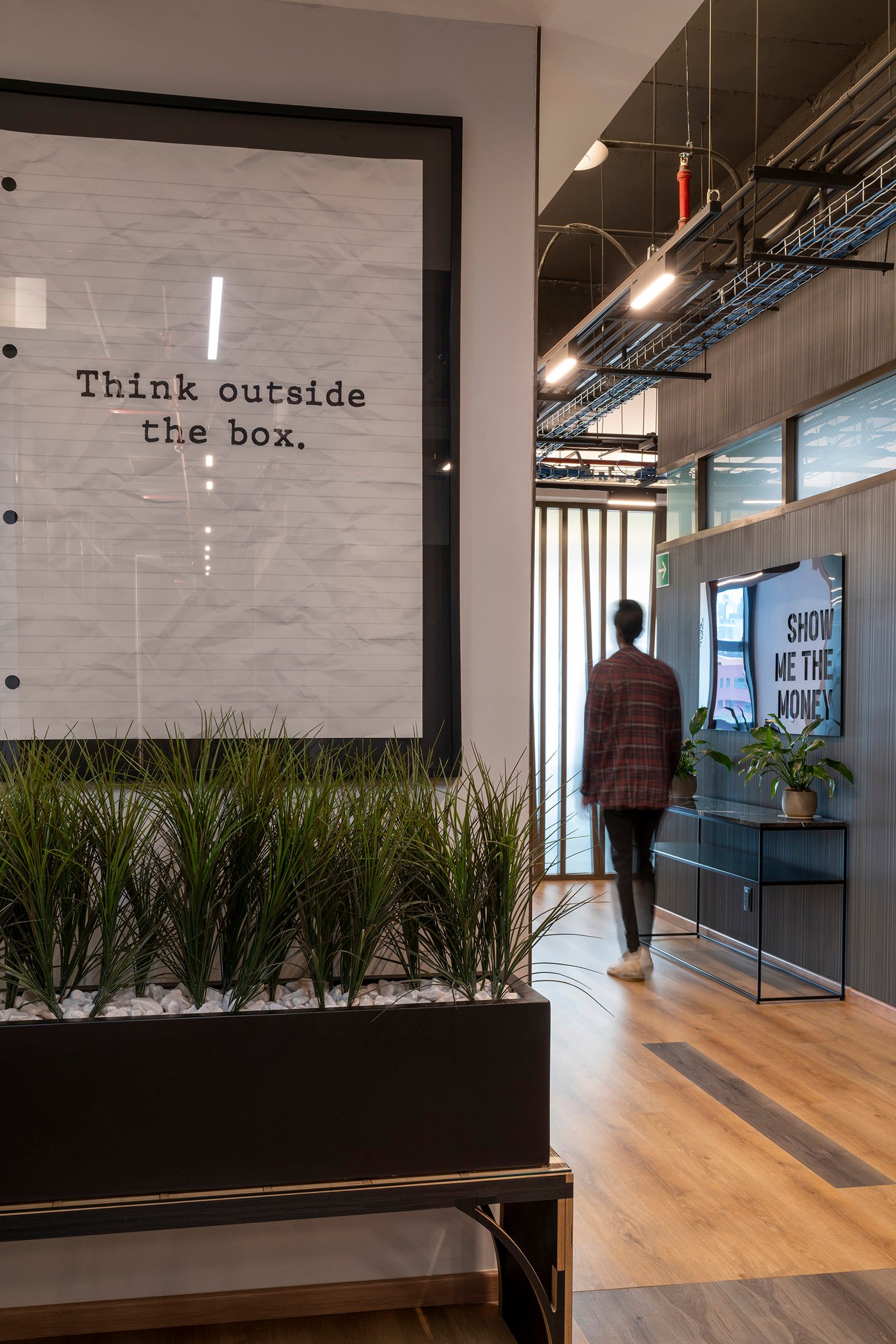 El principio de diseño se relaciona con el proyecto original, un espacio de trabajo abierto con áreas colaborativas y mucha transparencia. La estructura y las instalaciones se dejaron aparentes, delimitando solamente las áreas de los privados, para los que se utilizaron medios muros para enfatizar tanto el espacio abierto como la comunicación. Los únicos espacios cerrados son la sala de juntas y las cabinas de trabajo, que si es necesario se pueden mantener abiertas.