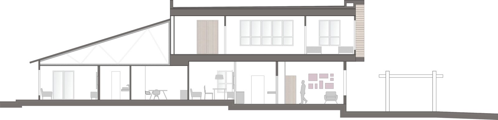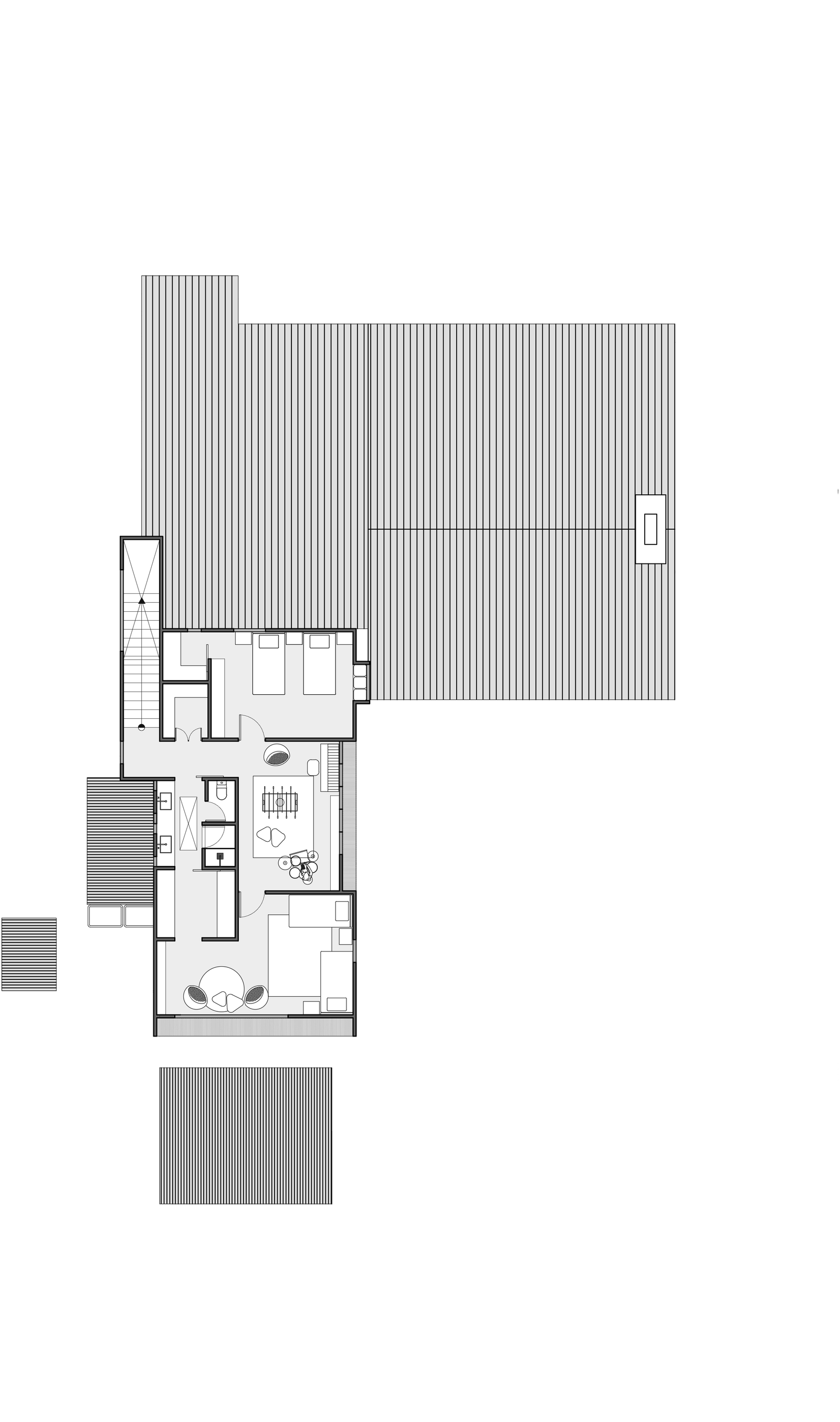 En la planta alta se encuentran dos habitaciones, unidas por un baño y un cuarto de juegos privado. La intervención resuelve funcionalmente las necesidades de la vida diaria de la familia al tiempo que propone una arquitectura vigente, con trazos actuales y ambientes cómodos y funcionales.