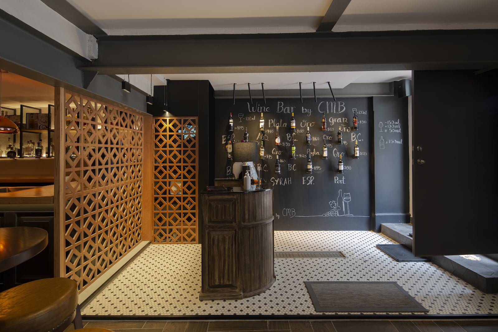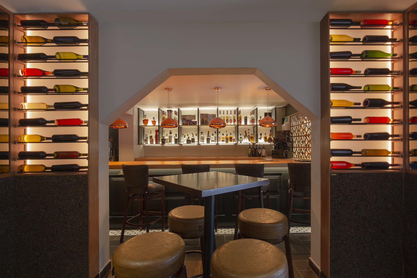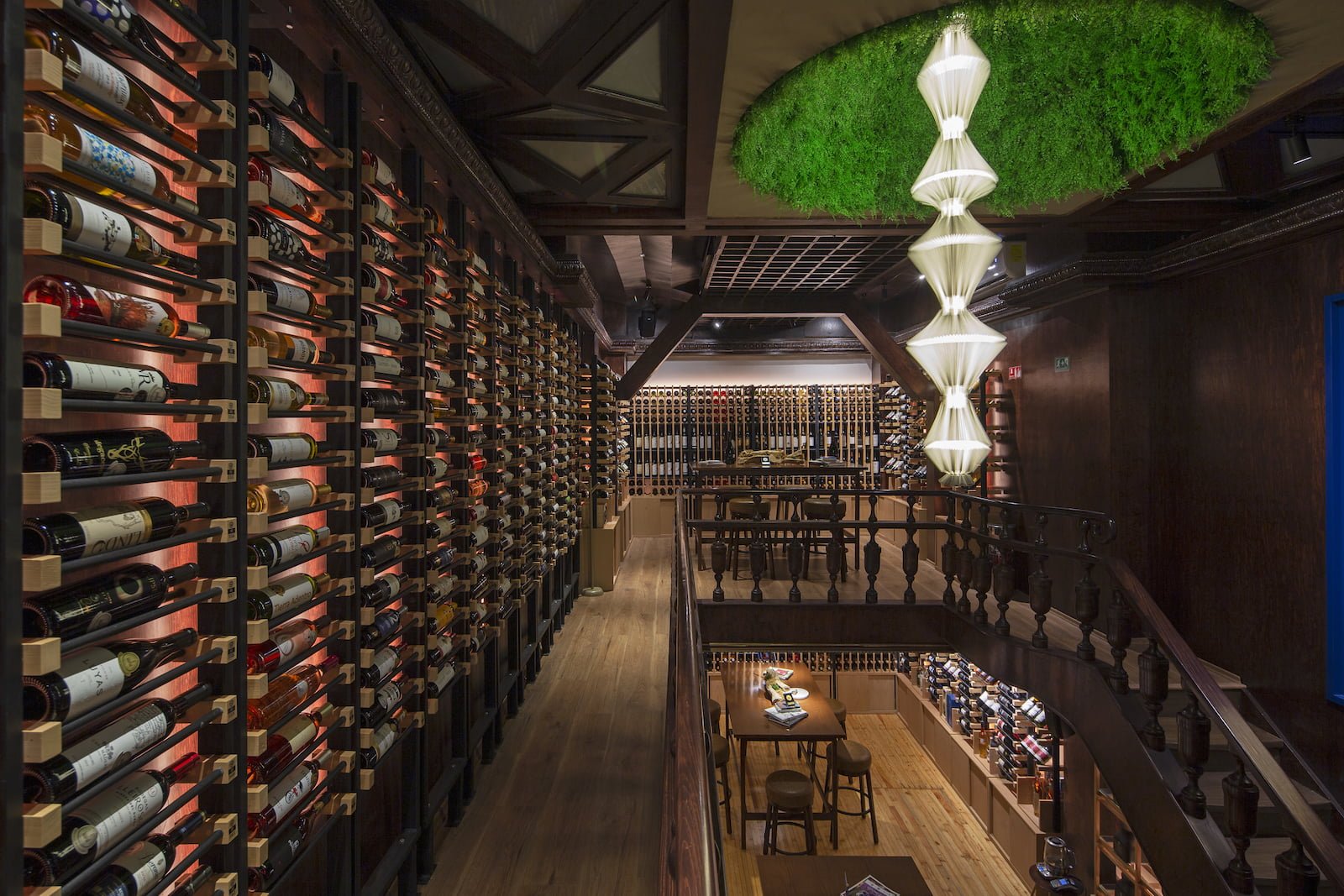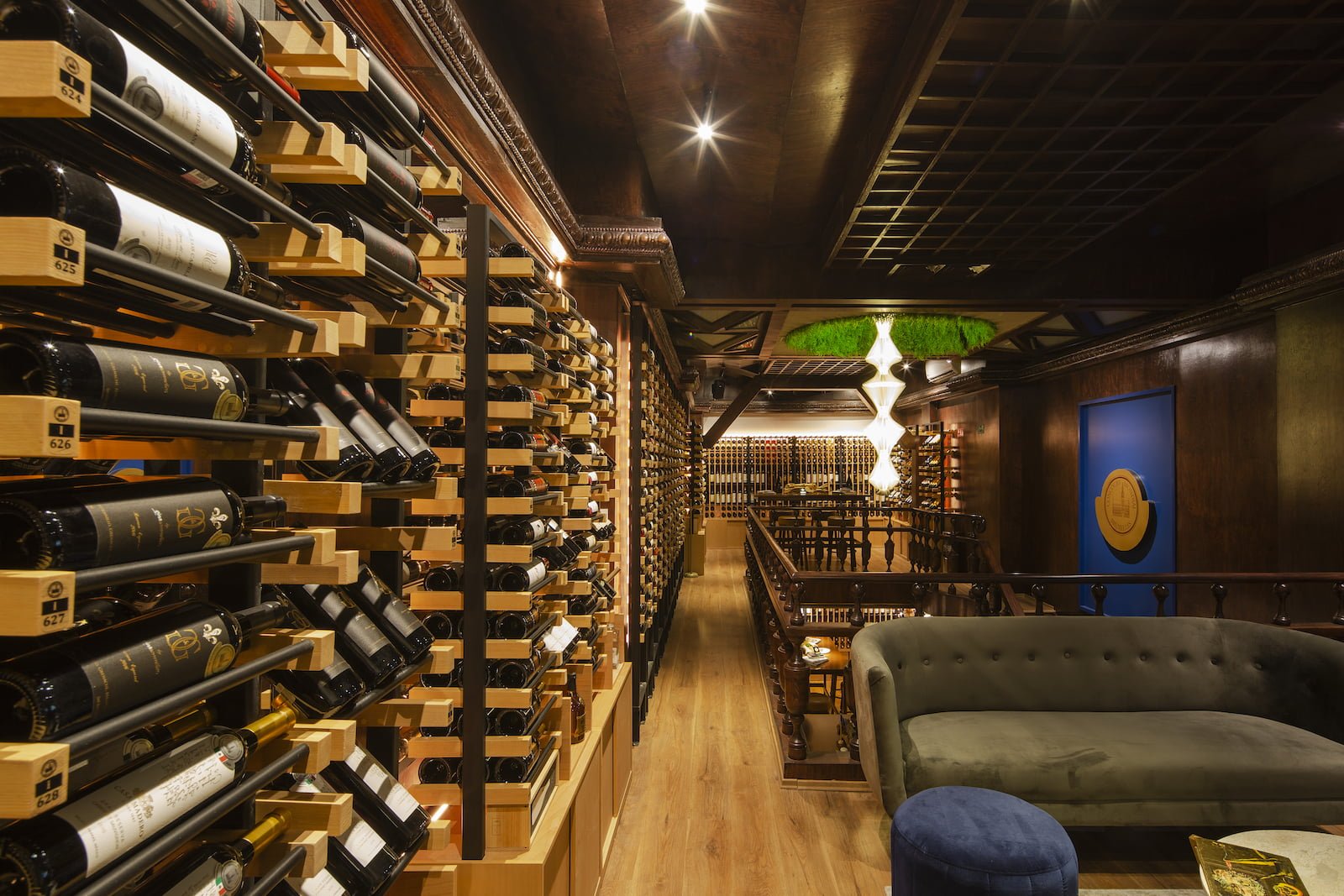 Situado en una vieja casona porfiriana de la colonia Juárez, CDMX, con interiores muy oscuros dispuesta en tres niveles, este bar debía ofrecer la exposición de al menos 700 etiquetas, pero con una meta de crecimiento para poder mostrar hasta 3,000 diferentes. Inspirado en el concepto de un piccadilly pub británico de ambiente relajado, la propuesta de Alejandra Medina y Fernanda Ariola fue crear un bar que ofreciera al usuario toda la experiencia del vino de principio a fin, hacer del entorno un centro de diálogo y exploración vinícola. Todo lo anterior tenía varios retos, además de llegar a un presupuesto adecuado, el diseño debía resaltar sin afectar los vinos con la luz y sobreexposición, generar distintos ambientes para poder desarrollar al mismo tiempo catas, reuniones de negocio y atención de comensales en general.