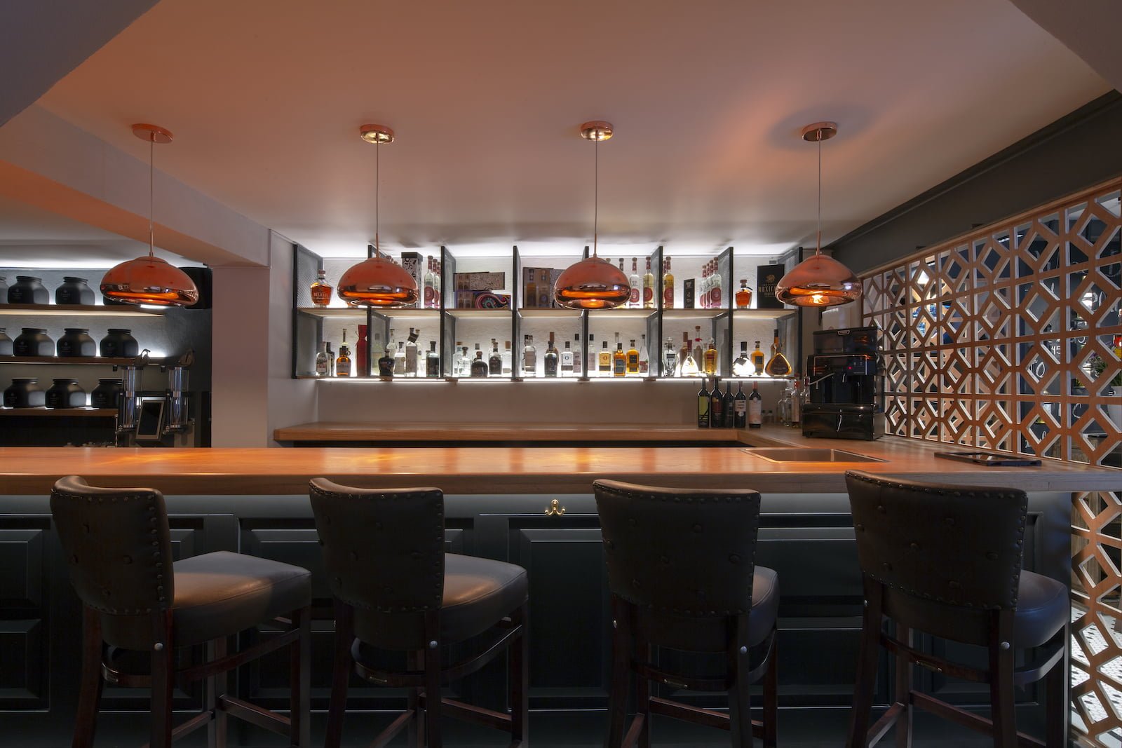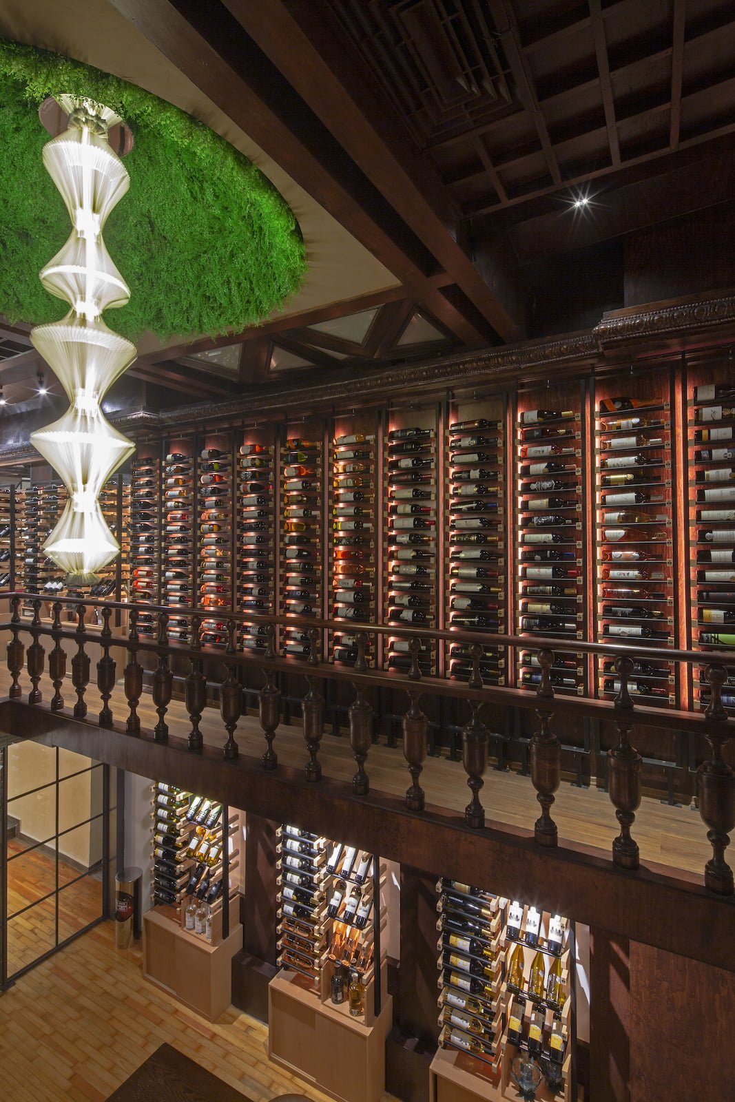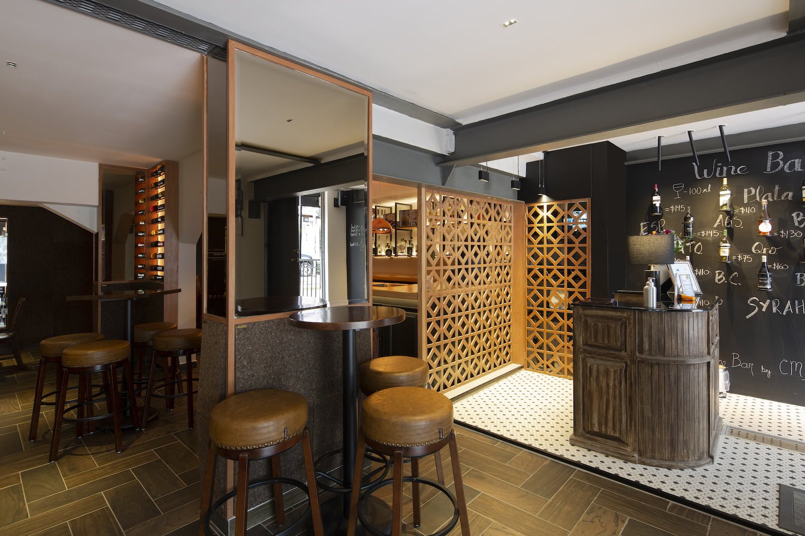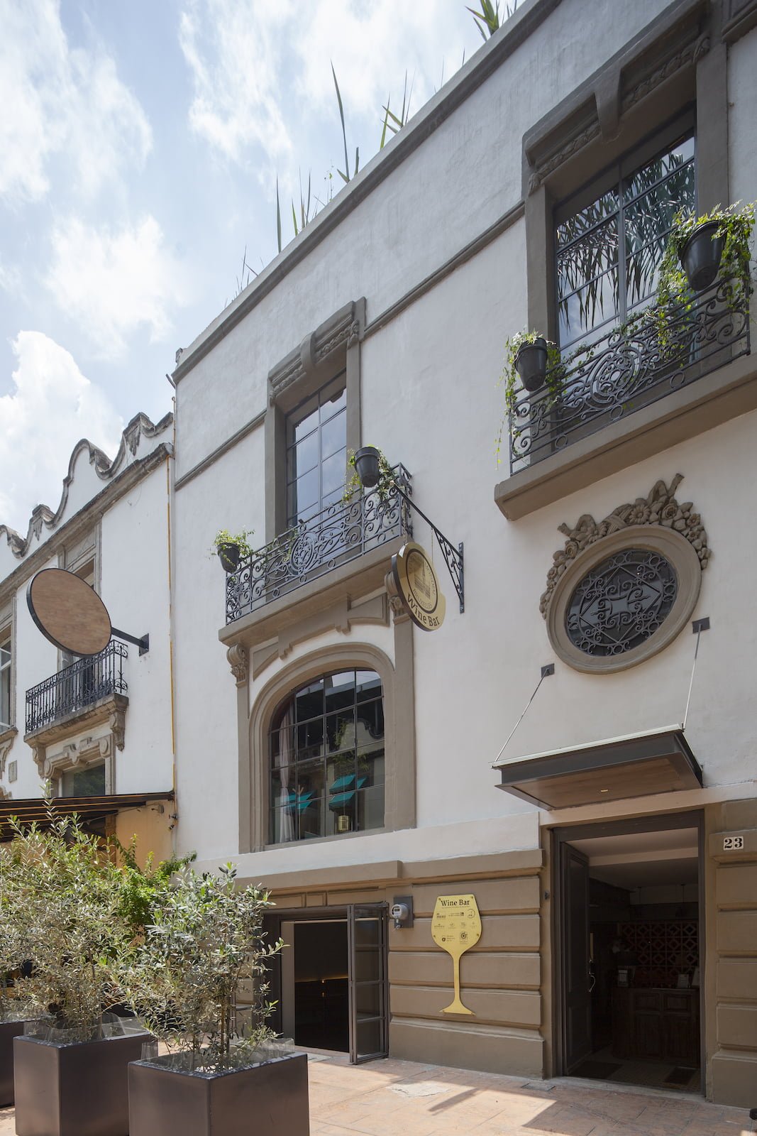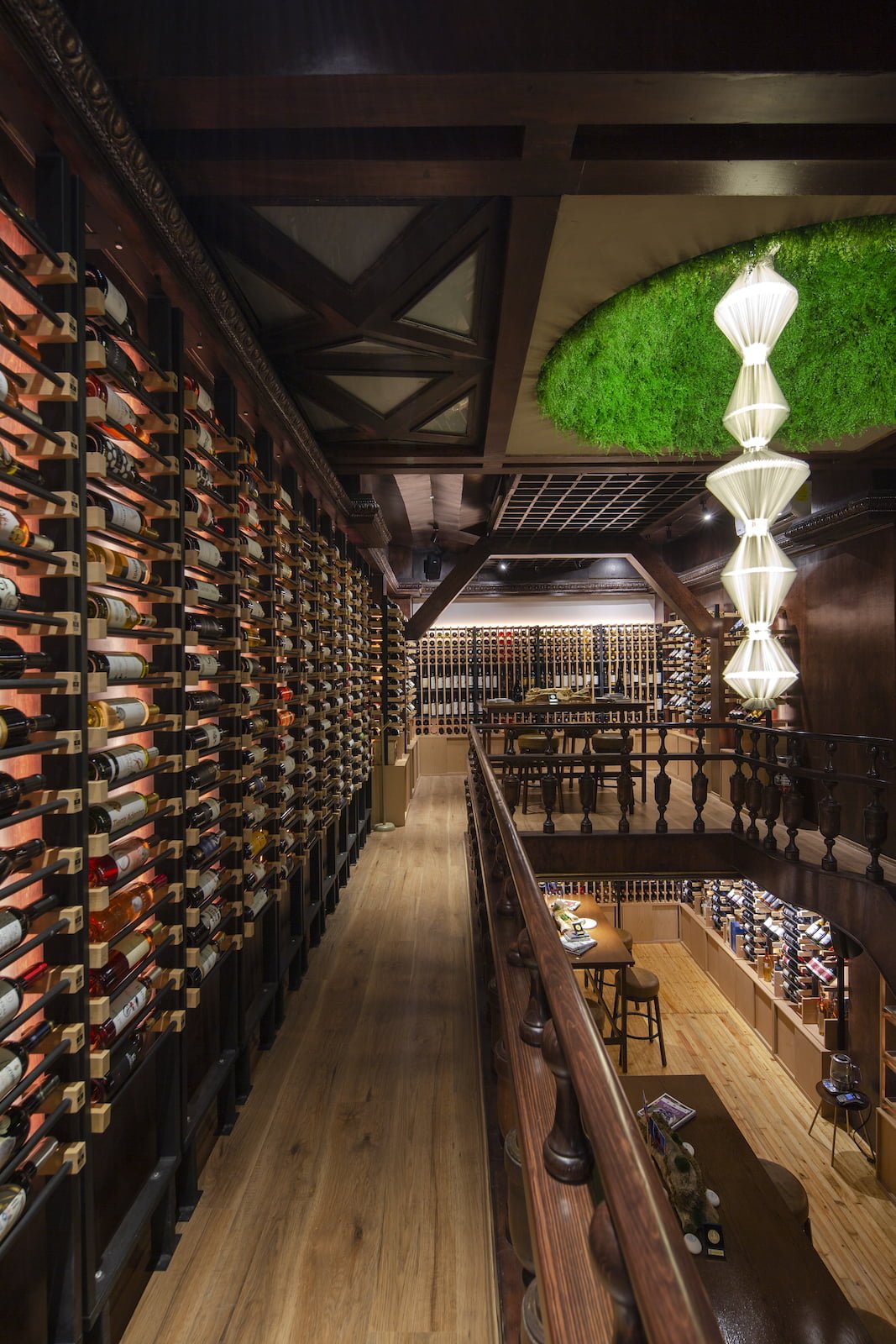 Situado en una vieja casona porfiriana de la colonia Juárez, CDMX, con interiores muy oscuros dispuesta en tres niveles, este bar debía ofrecer la exposición de al menos 700 etiquetas, pero con una meta de crecimiento para poder mostrar hasta 3,000 diferentes. Inspirado en el concepto de un piccadilly pub británico de ambiente relajado, la propuesta de Alejandra Medina y Fernanda Ariola fue crear un bar que ofreciera al usuario toda la experiencia del vino de principio a fin, hacer del entorno un centro de diálogo y exploración vinícola. Todo lo anterior tenía varios retos, además de llegar a un presupuesto adecuado, el diseño debía resaltar sin afectar los vinos con la luz y sobreexposición, generar distintos ambientes para poder desarrollar al mismo tiempo catas, reuniones de negocio y atención de comensales en general.